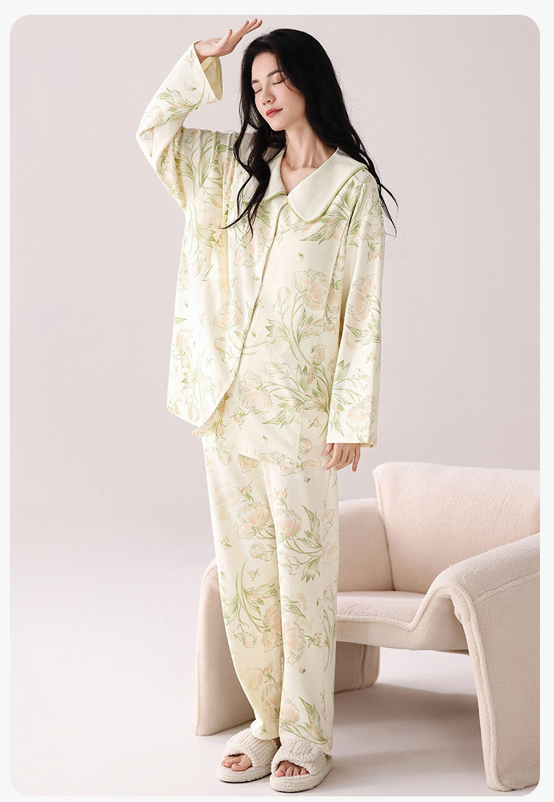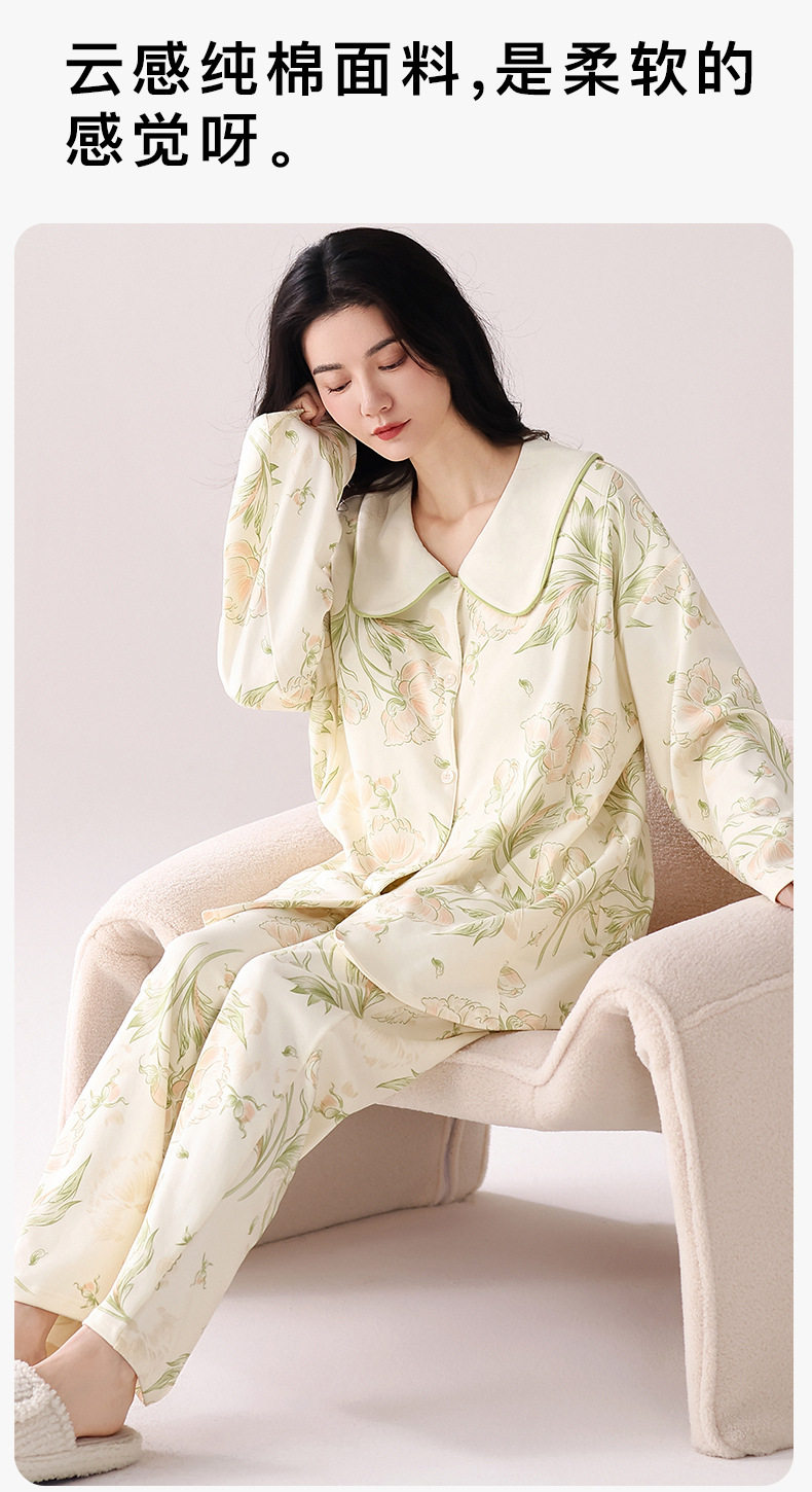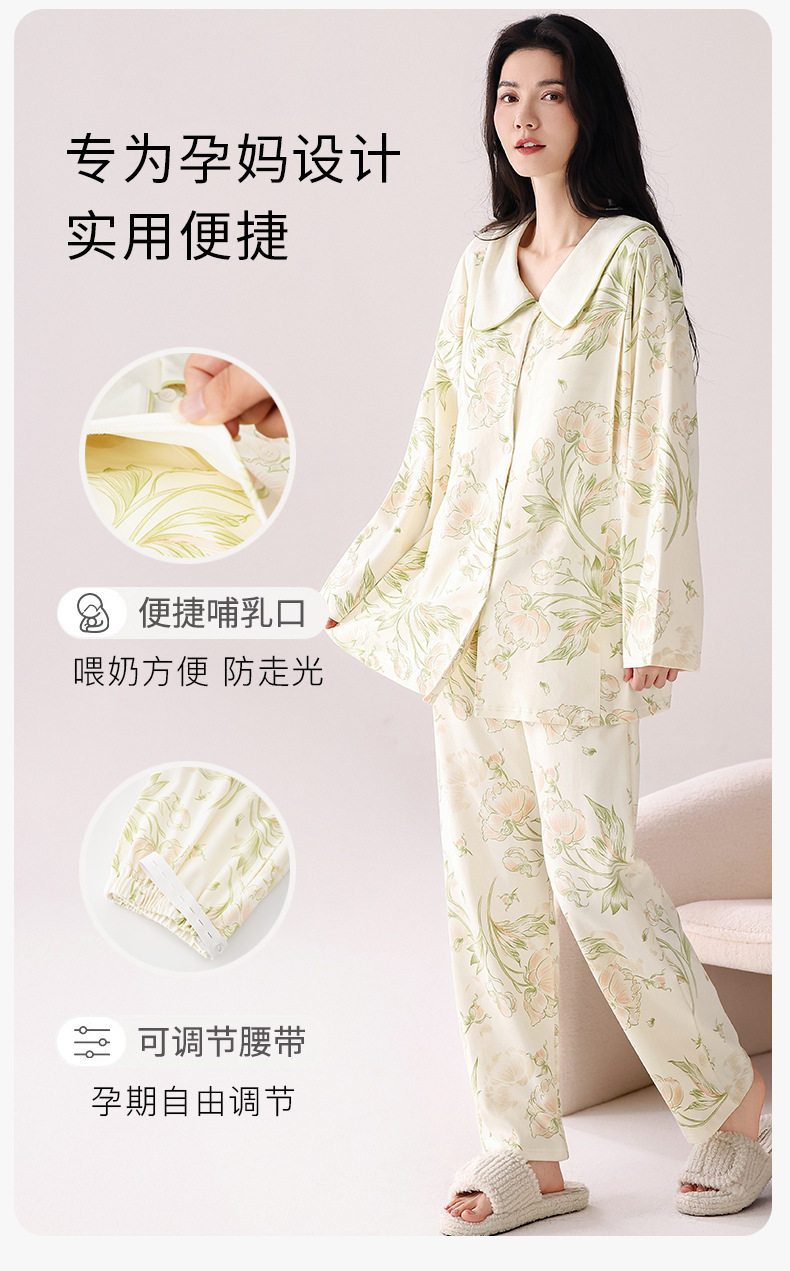 Pure Cotton Confinement Clothes with Breast Pads, Spring and Autum Lapel Cardigans for Pregnant Women, Breastfeeding, Adjustable Waist, Loose and Casual