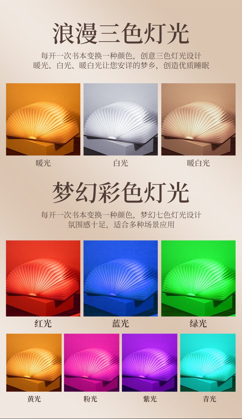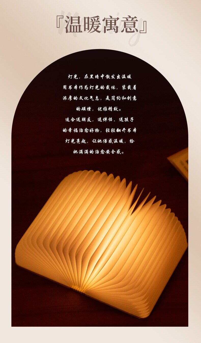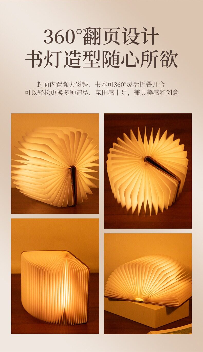 Creative Folding Book Lamp, Direct from the Manufacturer, USB Powered, Stepless Dimming, Eye-Protecting Night Light, Walnut Base, for Bedroom