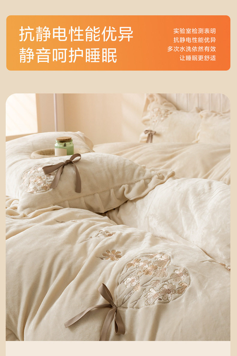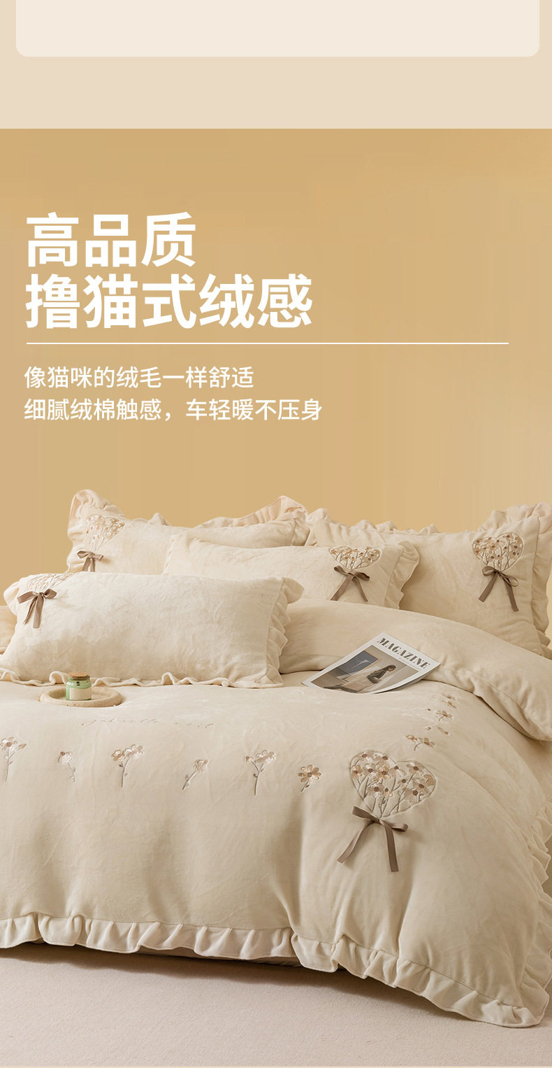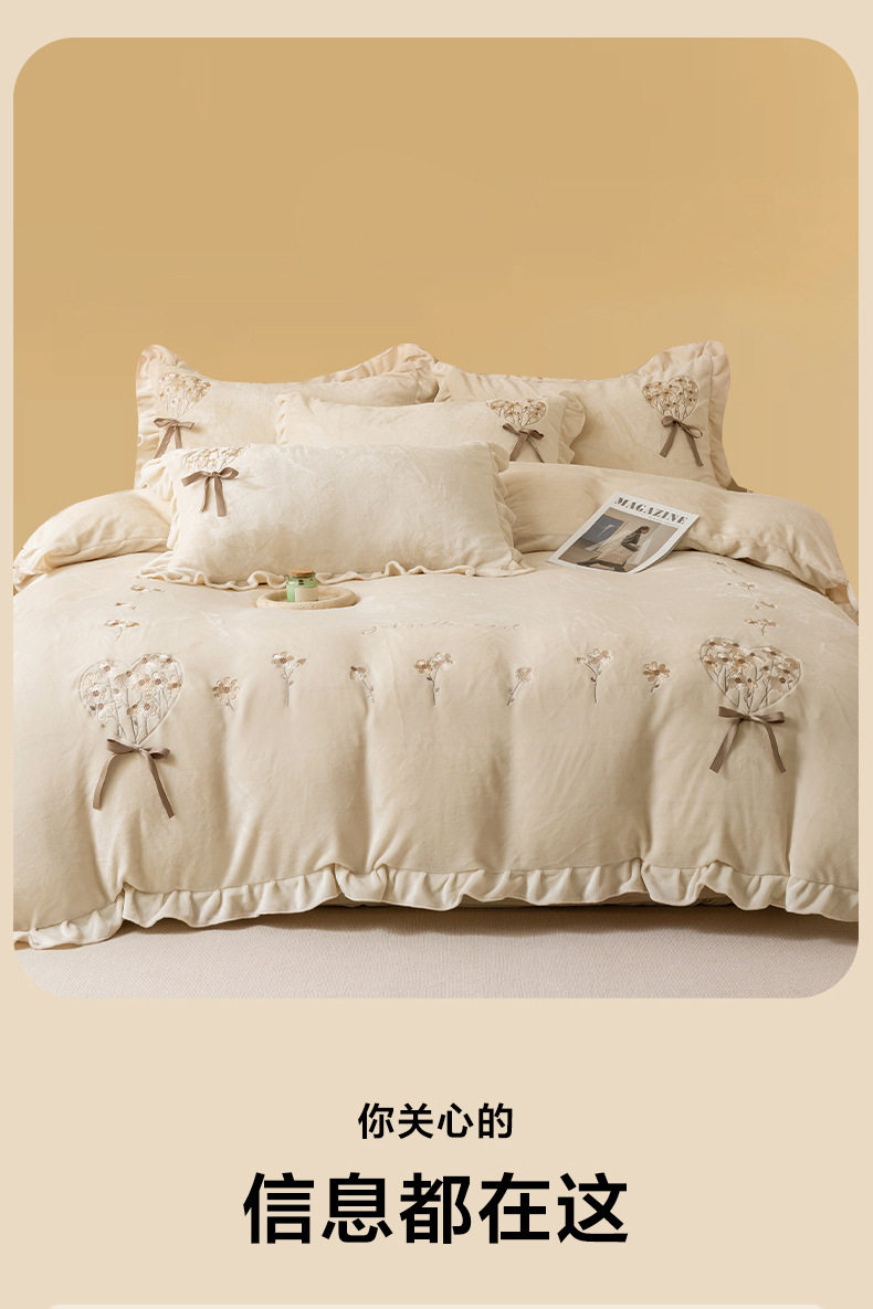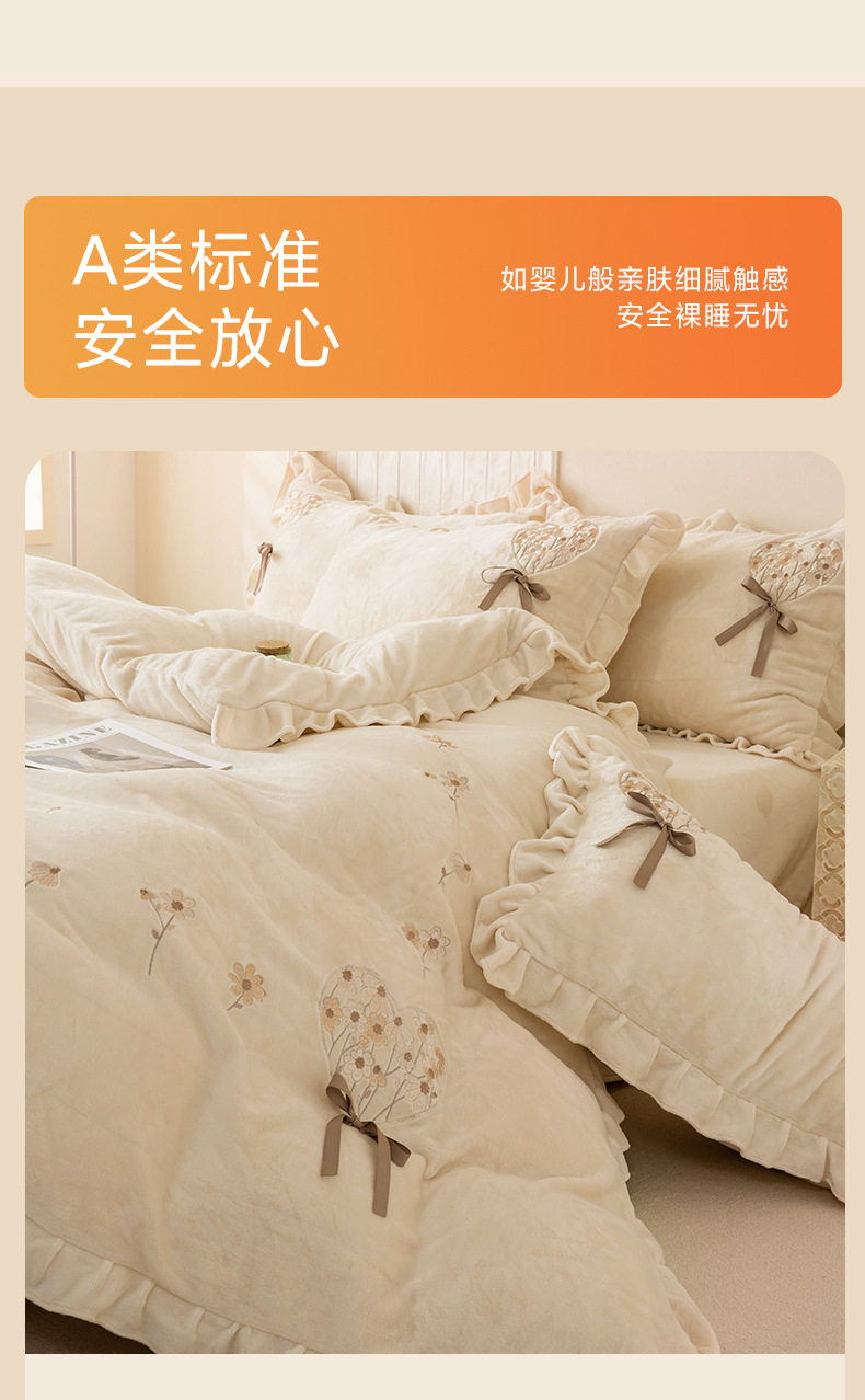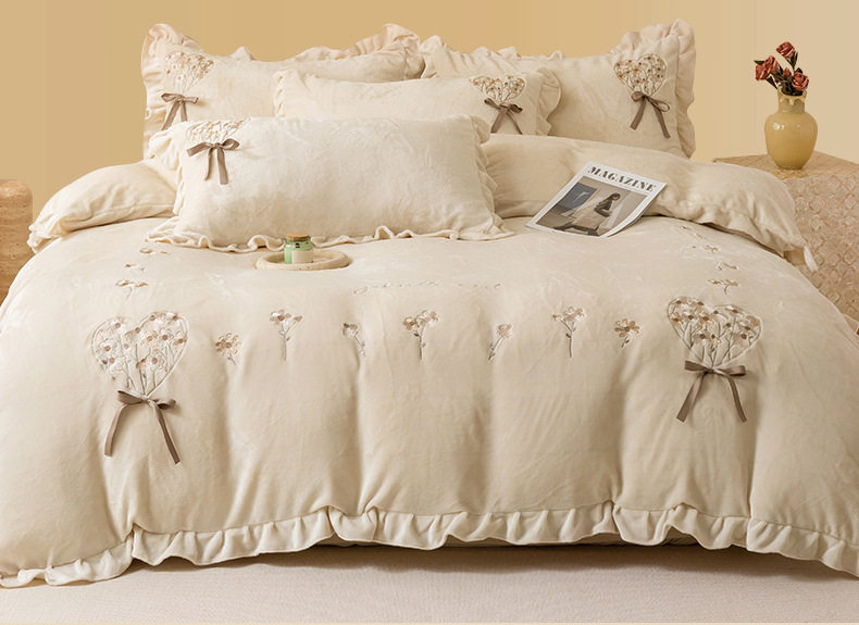 Korean Lace Milk Velvet Four-Piece Winter Thickeneded Warm Butterfly Quilt Cover Coral Velvet Girly Heart Lace Bedding
