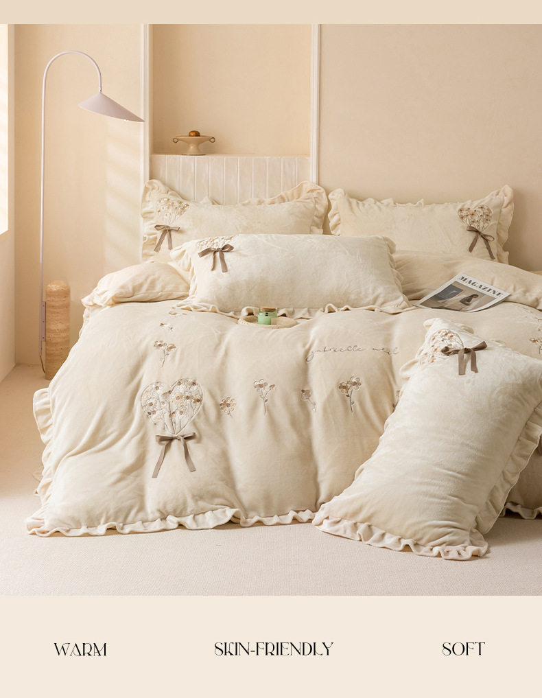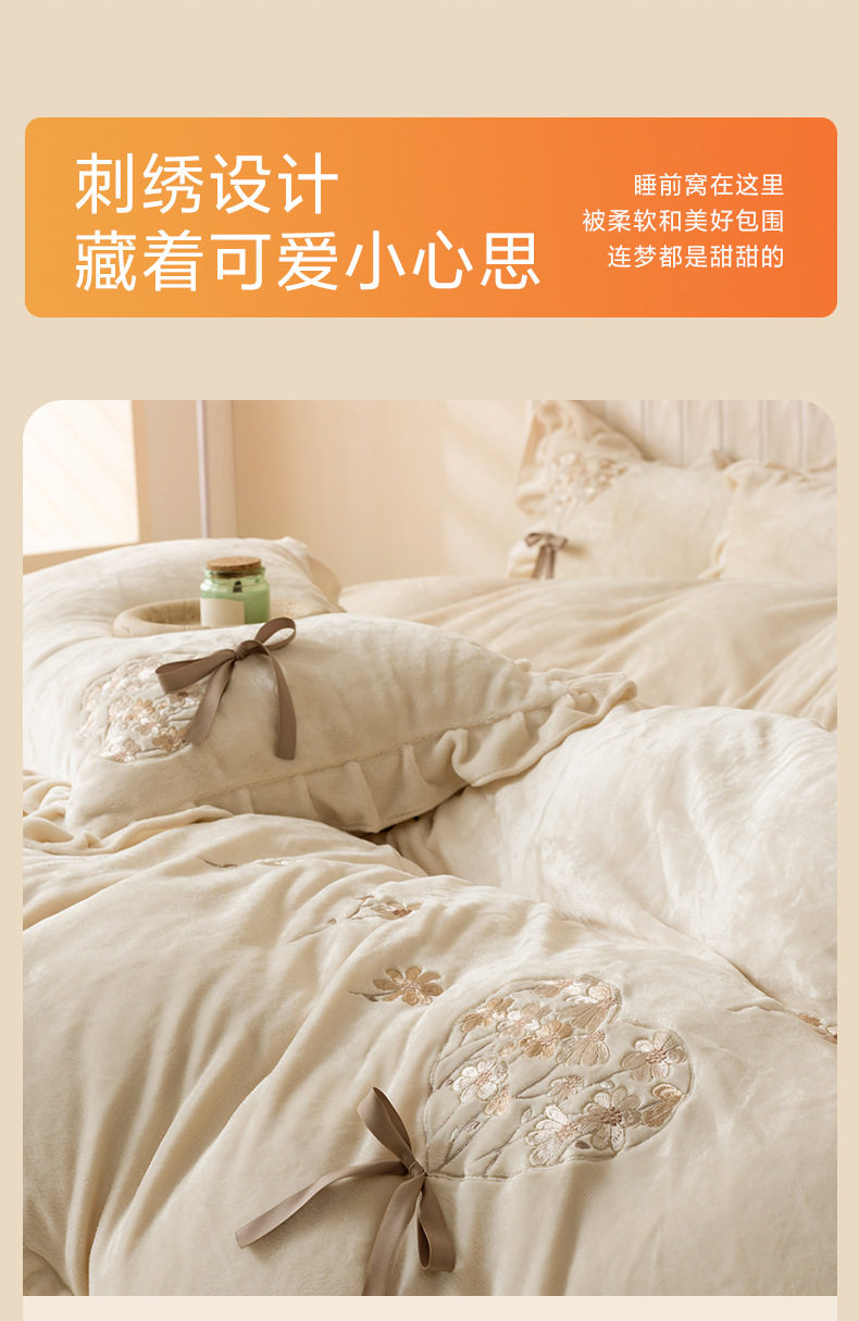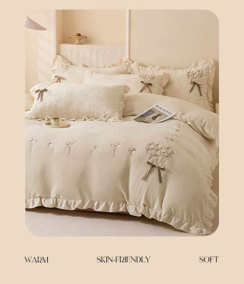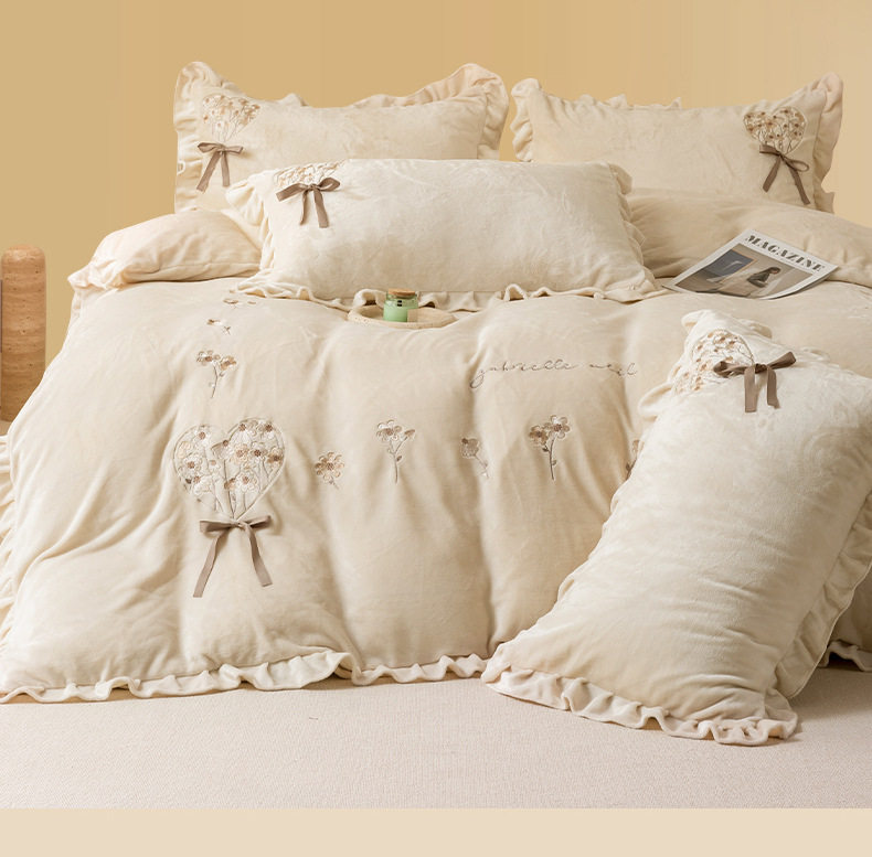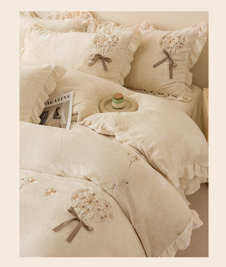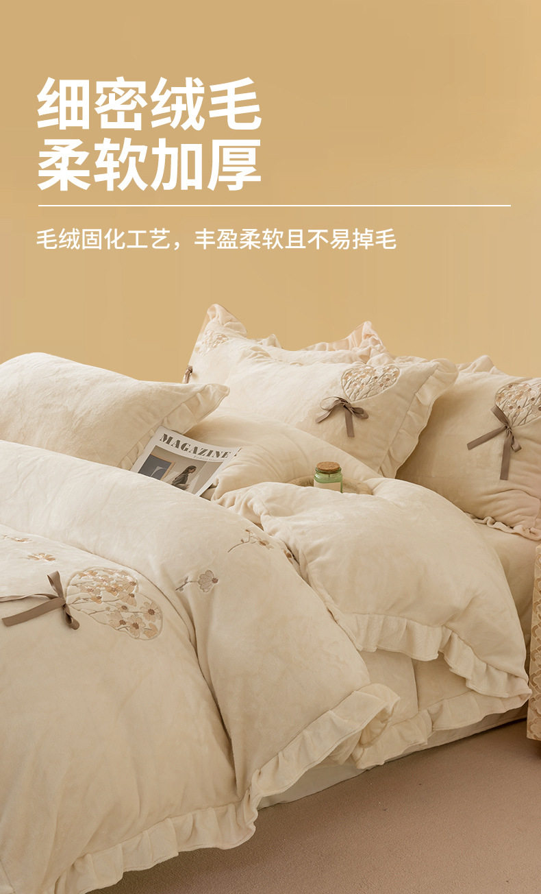 Korean Lace Milk Velvet Four-Piece Winter Thickeneded Warm Butterfly Quilt Cover Coral Velvet Girly Heart Lace Bedding