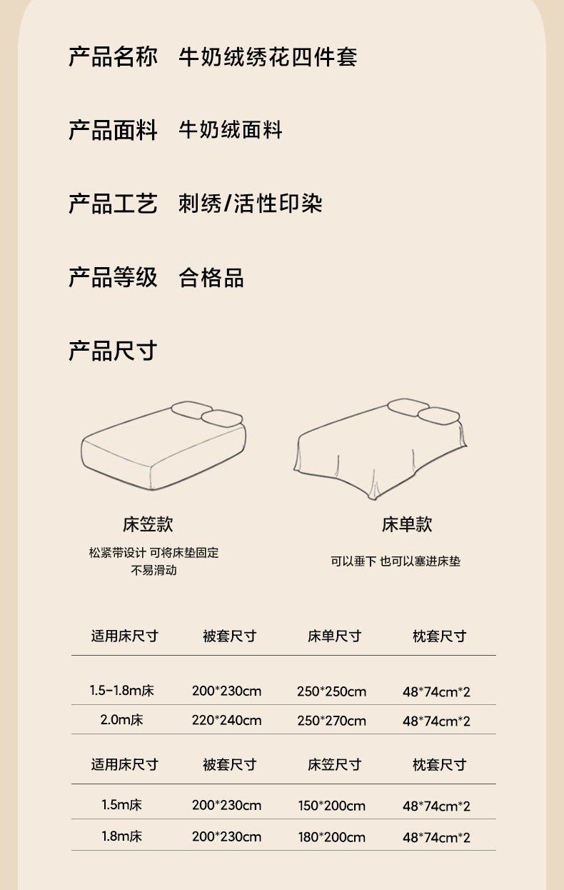 | Dimensions | [sheet style] 1.5 four-piece set - quilt cover 200x230,[sheet style] 1.8 four-piece set - quilt cover 200x230,[sheet style] 2.0 four-piece set - quilt cover 220x240,[fitted sheet] 1.5 four-piece set - quilt cover 200x230,[fitted sheet] 1.8 four-piece set - quilt cover 200x230 |