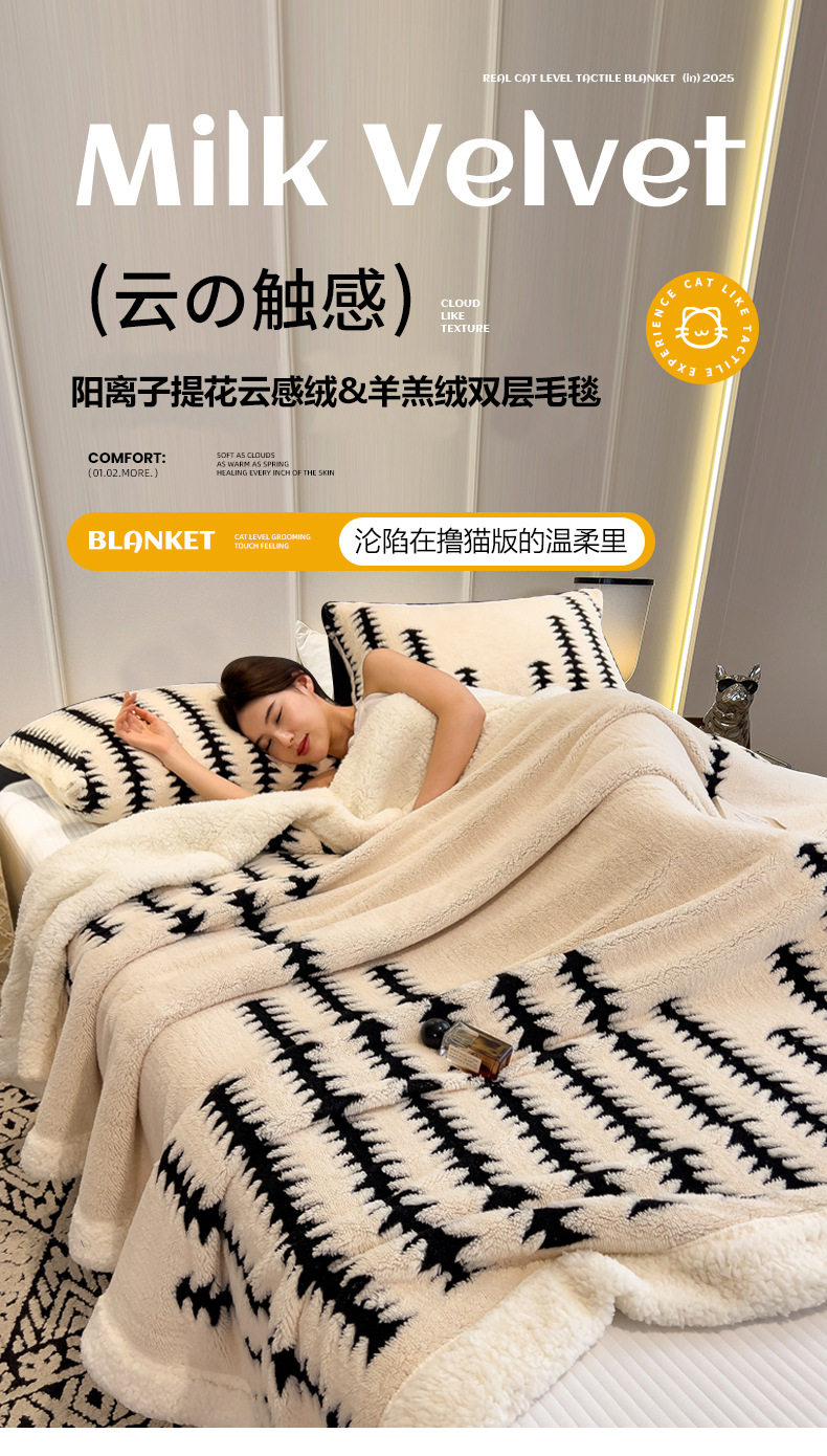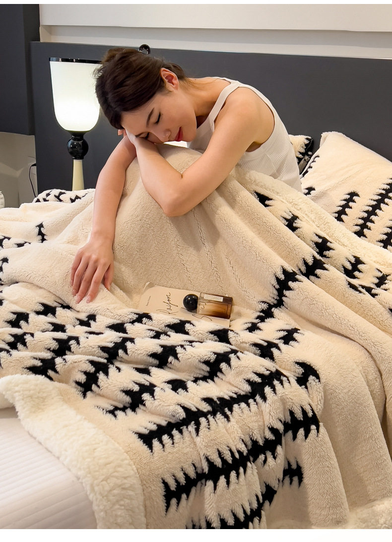 Class a Jacquard Thickeneded Cloud-Like Velvet Cashmere Double-Layer Blanket Quilt Thickeneded Nap Single Office Blanket