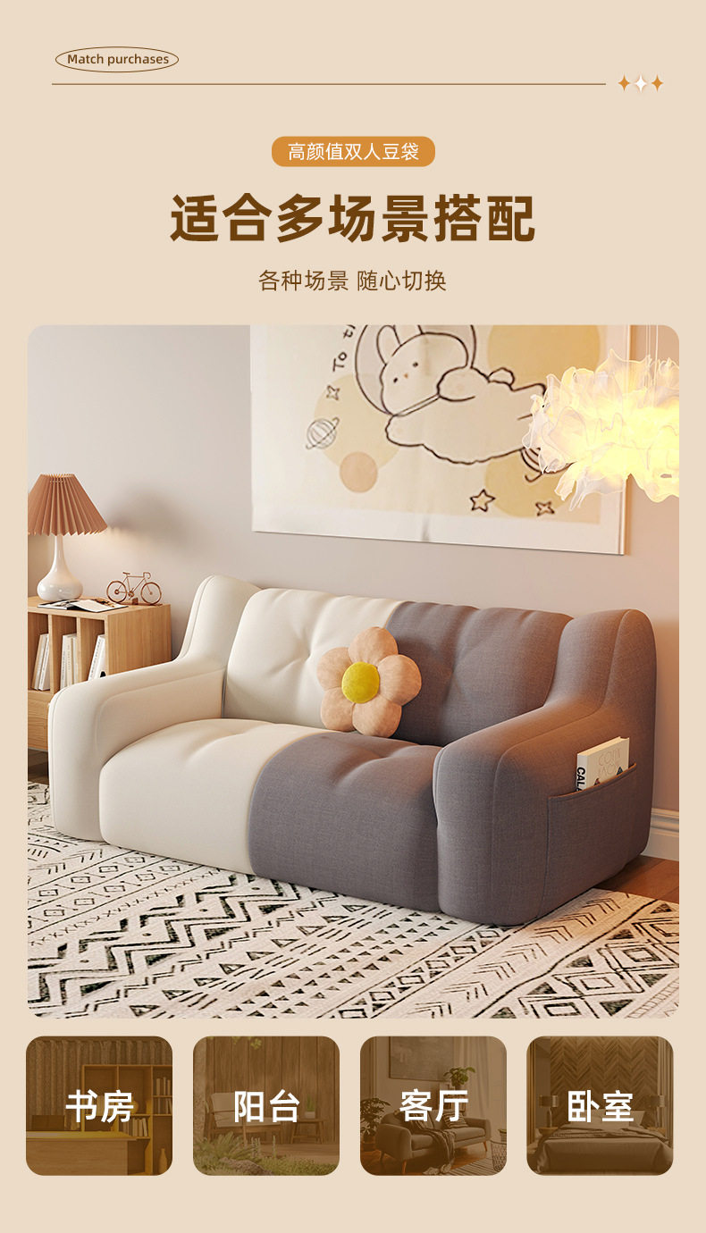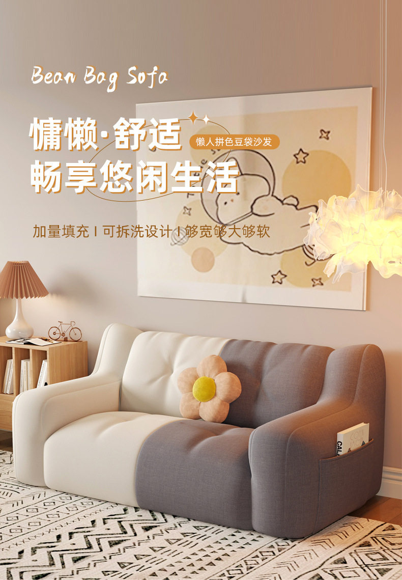 Fabric Sofa Bean Bag, Reclining and Sleeping, Single or Double Bedroom, Lazy Small Sofa, Rental Room, Small Apartment, Leisure Lounge Chair