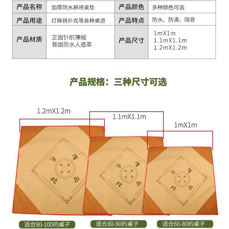 Waterproof Noise-Cancelling Leather Mahjong Tablecloth Hand-Rubbed Household Square Mahjong Mat with Pocket Large Size 1m - 1.4 Ginger Tea