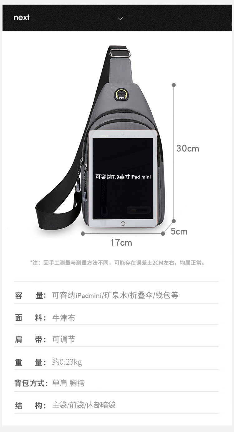 Fashion Trendy Chest Bag New Men's Shoulder Bag Versatile Casual Small Backpack Multifunctional Running Sports Chest Bag