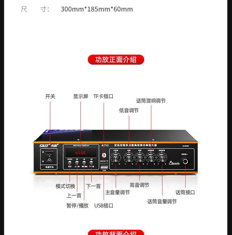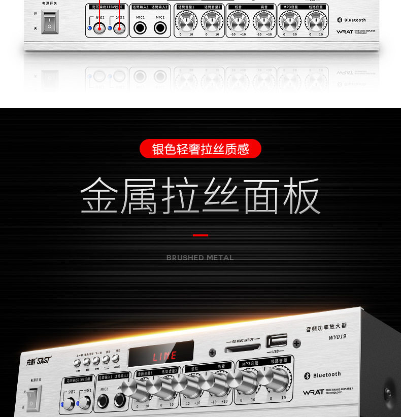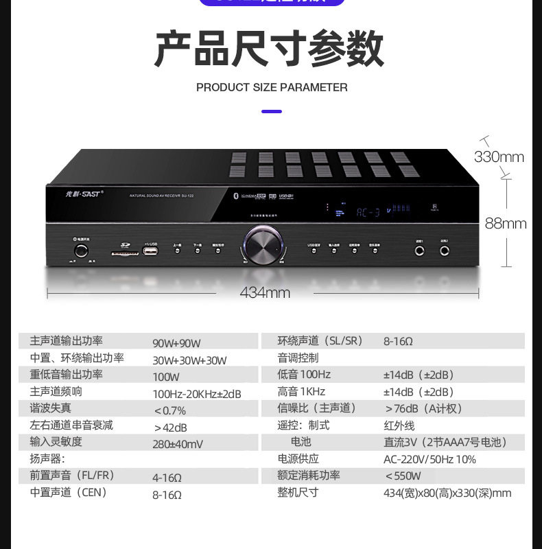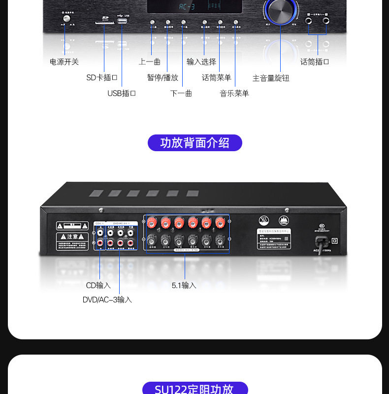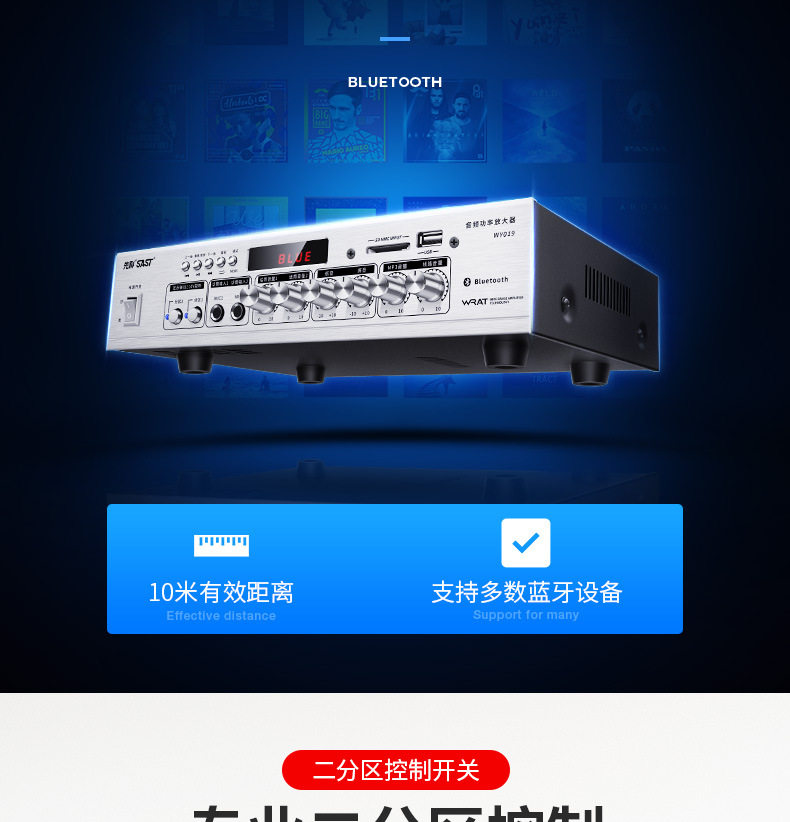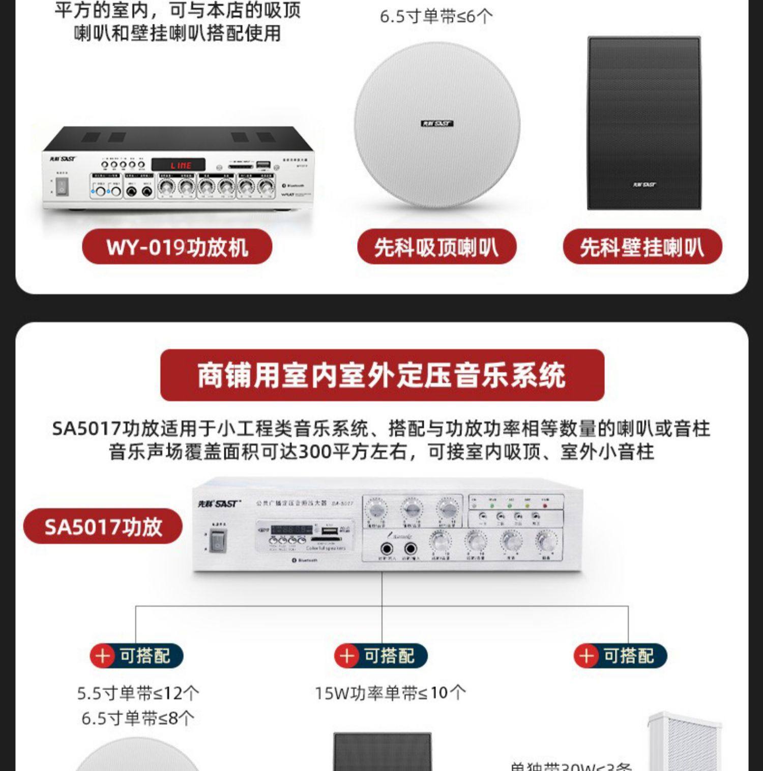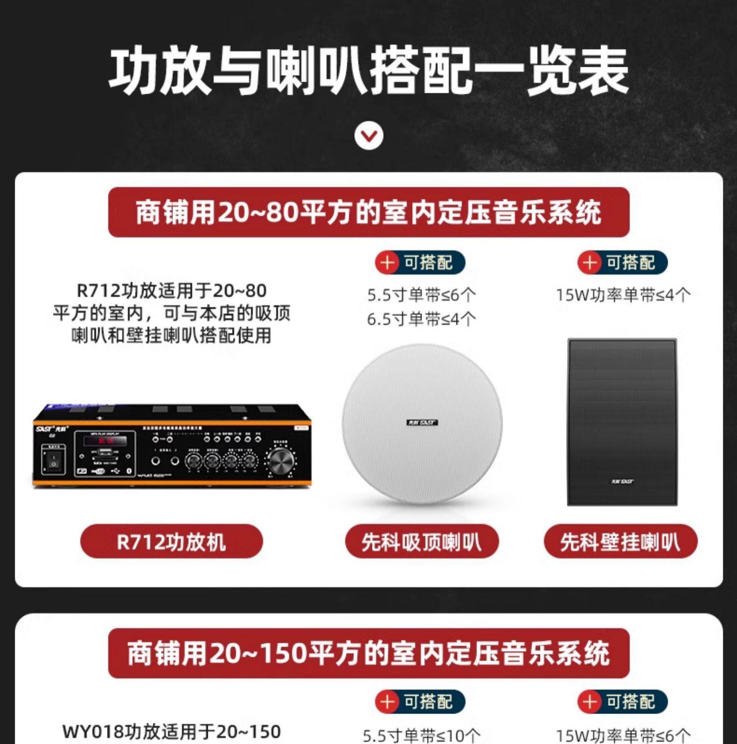 | Color | [for shops] constant voltage power amplifier su-906 100w limited purchase,[for shops] constant voltage power amplifier su-906 100w,[for shops] 120w silver bluetooth two-zone (120w),[for shops] 120w black dual-zone bluetooth upgraded version,[for shops] 120-watt silver bluetooth two-zone upgraded version,[for shops] 150w sa9016 four-zone bluetooth amplifier (150w),[for shops] 180w two-zone bluetooth amplifier,[engineering use] 200w three-zone bluetooth power amplifier for fixed voltage large area engineering use,[engineering use] 300w three-zone bluetooth power amplifier for fixed voltage large area engineering use,[engineering use] 500w three-zone bluetooth power amplifier for fixed voltage large-area engineering use,[engineering use] 700w five-zone bluetooth power amplifier with fixed voltage for large-area engineering use,[engineering use] 900w five-zone bluetooth power amplifier with fixed voltage for large-area engineering use,[engineering use] 1200w five-zone bluetooth power amplifier with fixed voltage for large-area engineering use,[engineering use] 1350w five-zone bluetooth power amplifier for fixed voltage large area engineering use,[household fixed resistance] wy-009 200w household 2.0 fixed resistance power amplifier comes with 10m audio cables,[fixed resistance for home use] wy-010 300w home 5.1 fixed resistance amplifier comes with 10m audio cables,[home fixed resistance] su-122 550w home theater 5.1 channel high power free 10m audio cable,[home fixed resistance] su-122 550w upgraded version of luxury 5.1 channel high power, free 10m audio cables,[household fixed resistance] ak-558 550w high power fixed resistance amplifier comes with 10m audio cables,Pa-315 recommendation 12inch card pack matching (comfy basics edition) |