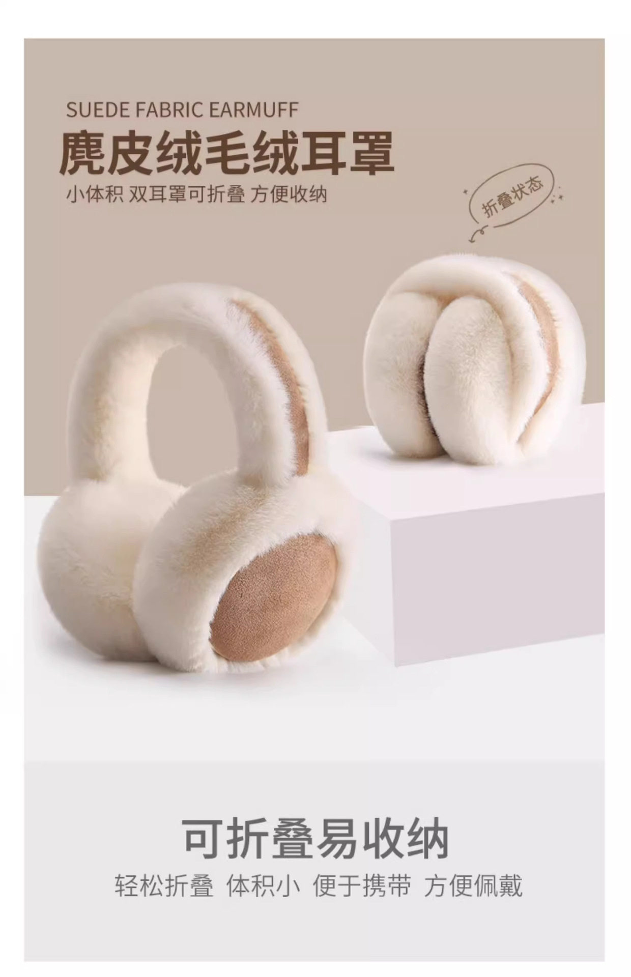 Color Pink suede plush earmuffs/foldable plus thick fleece,Chestnut suede plush earmuffs/foldable plus velvet and thickening,Gray suede plush earmuffs/foldable plus velvet and thickening