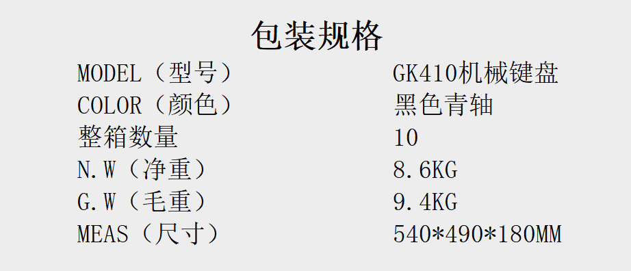 | Color | Gk410 keyboard [black green axis] + gm130 gaming mouse,Gk410 mechanical keyboard [black green switch],Gk410 keyboard [black green axis] + gm110 gaming mouse |