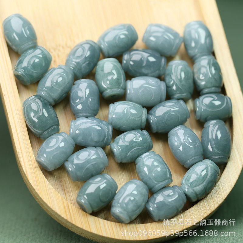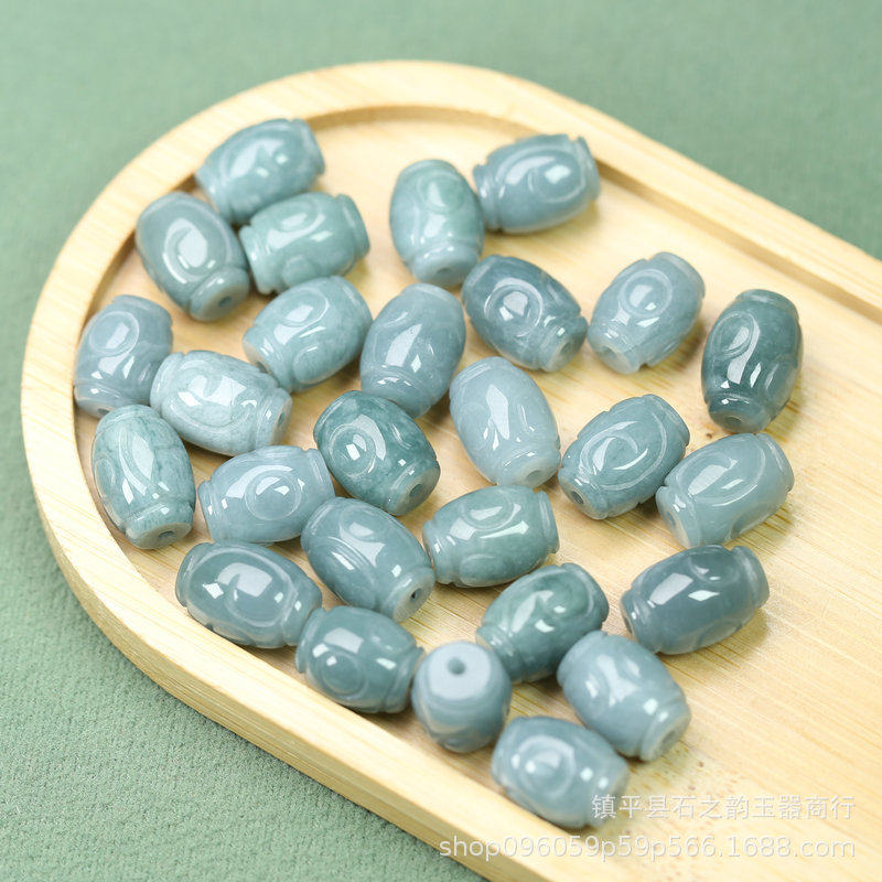 Pure Natural Jade Blue Water Ruyi Cloud Pattern Barrel Beads Carved 10*13mm Hole 1mm DIY Bracelet Necklace J188