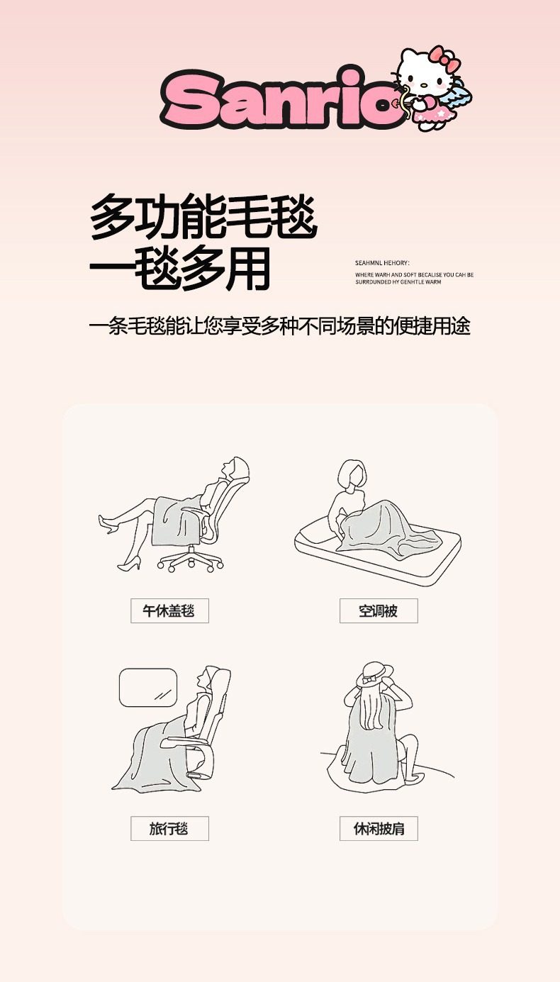 Sanrio Blanket Nap Blanket Air Conditioning Blanket Kindergarten Blanket Shawl Towel Blanket Thickened Velvet Blanket Wholesale Cross-Border
