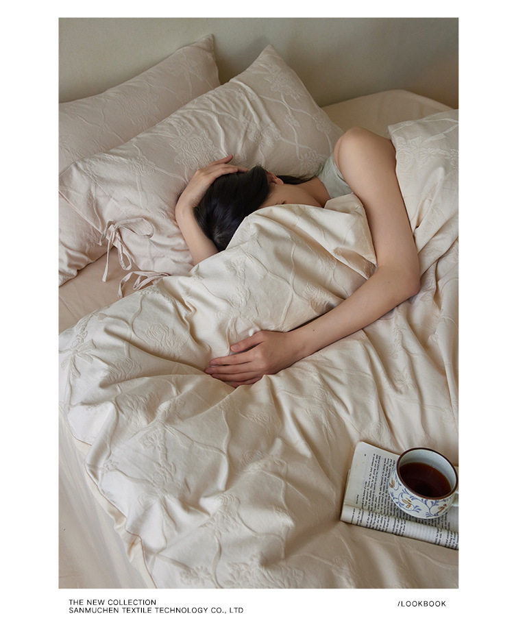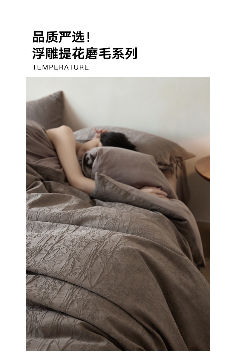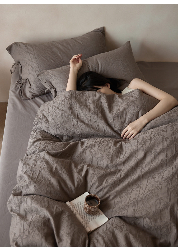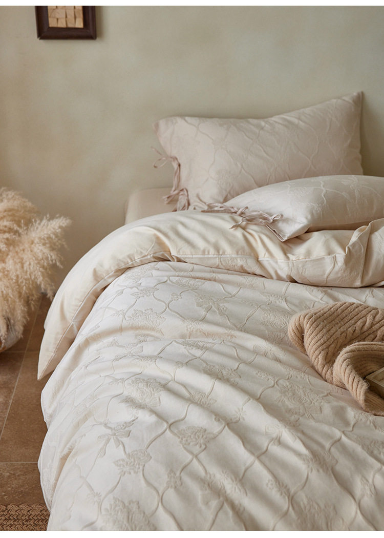 Scandinavian Cotton Embossed Jacquard Bed Three or Four Piece Set 1.8m Pure Cotton Brushed Bed Sheetss Bedding Quilt Cover Autumn and Winter Style