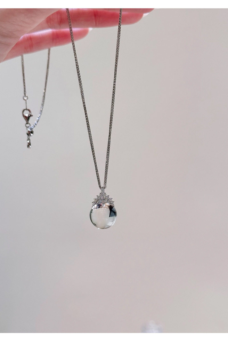 Ice and Snow Queen Crown White Crystal Pendant Necklace Accessories Women's Clavicle Chain Light Luxury Niche High-End Necklace Jewelry
