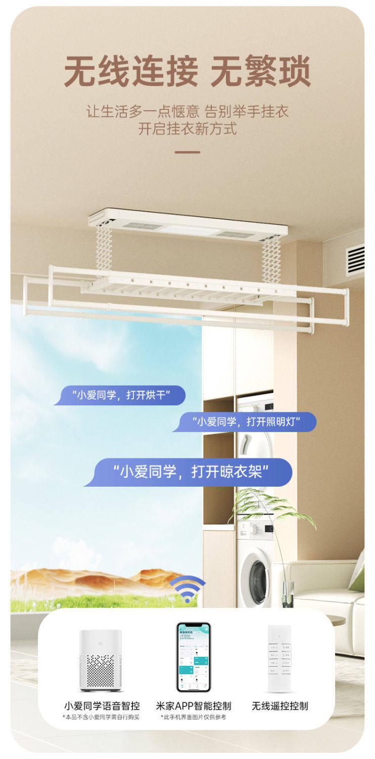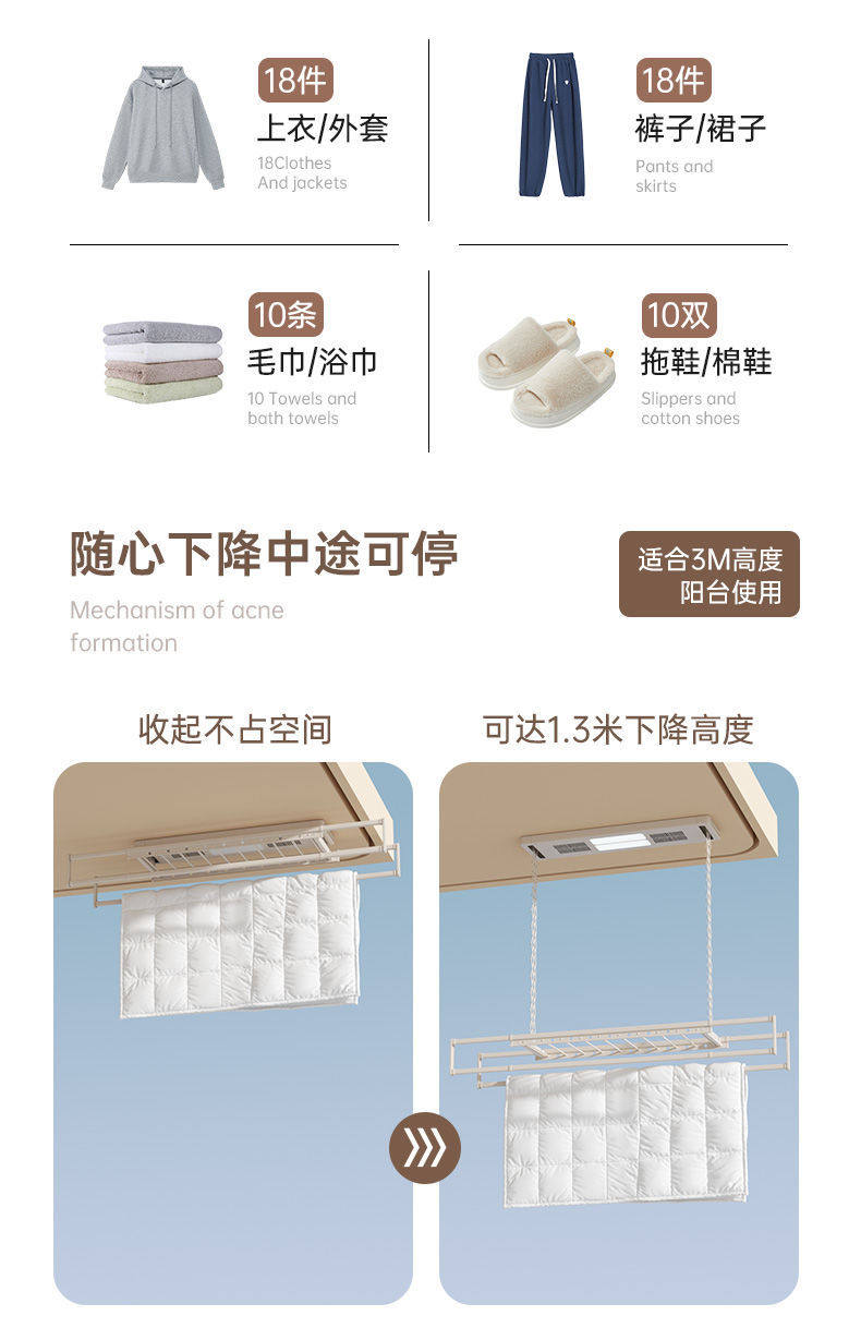 Intelligent Electric Clothes Drying Rack with Voice Remote Control, Automatic Lifting and Lowering, Household Balcony Drying Three-Scissor Clothes Drying Rod