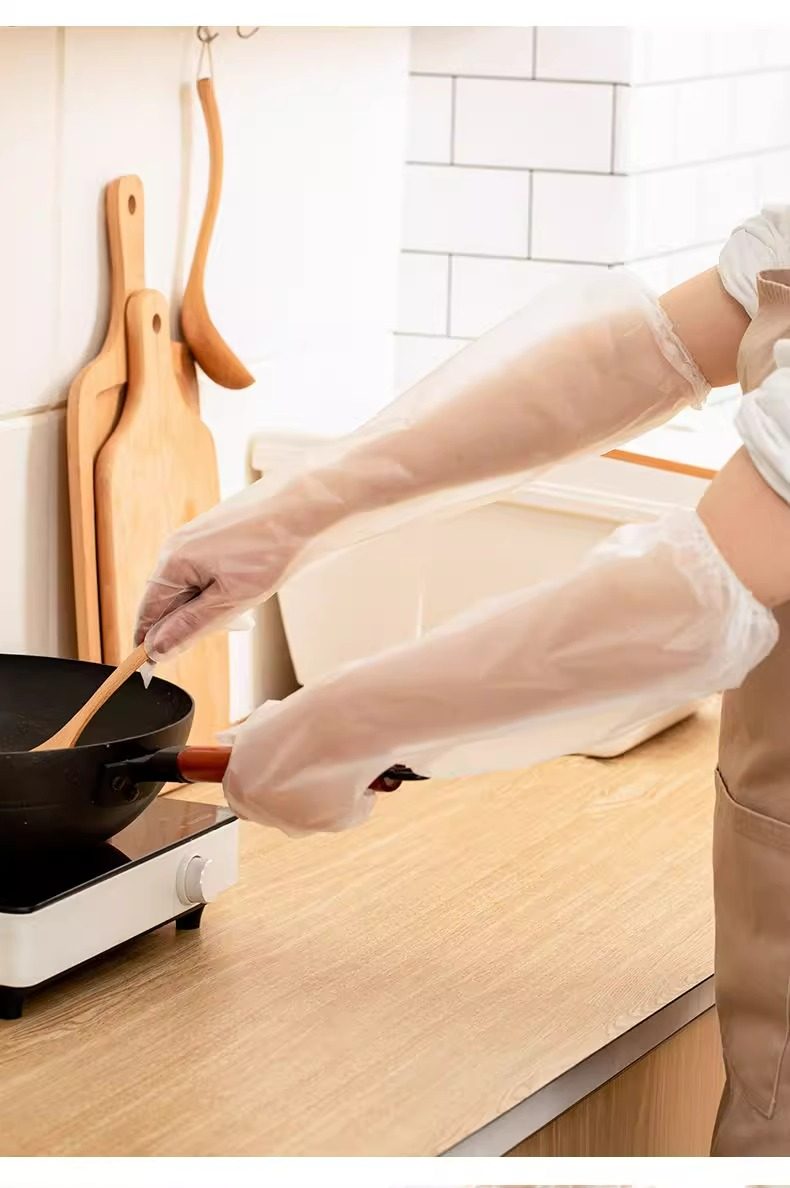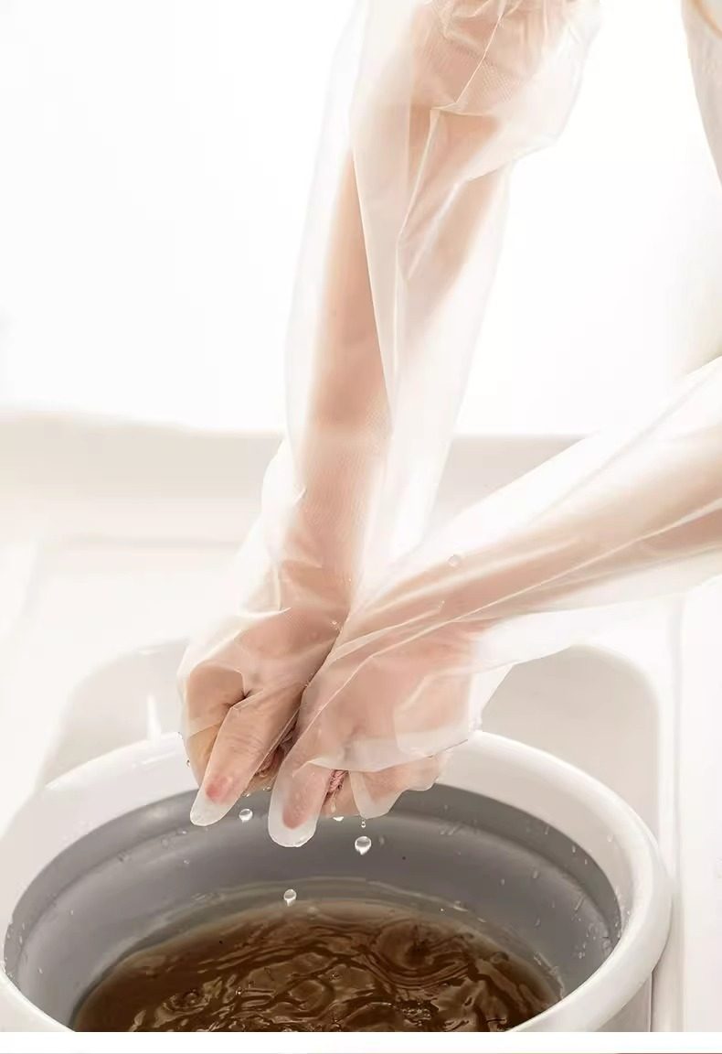 Housework Gloves for Women Disposable Pe Extended Thickeneded Waterproof Food Kitchen Dishwashing Laundry Tpe Wear-Resistant Drawstring