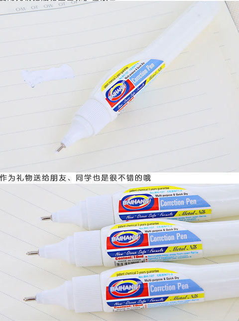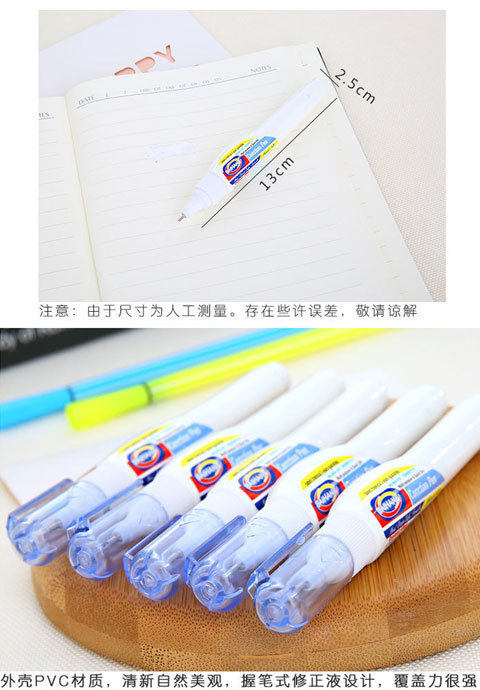 | Specifications | 1 pen-style correction fluid,2 pens of pen-style correction fluid,3 pens of pen-style correction fluid,4 pieces of pen-style correction fluid,6 pieces of pen-style correction fluid |