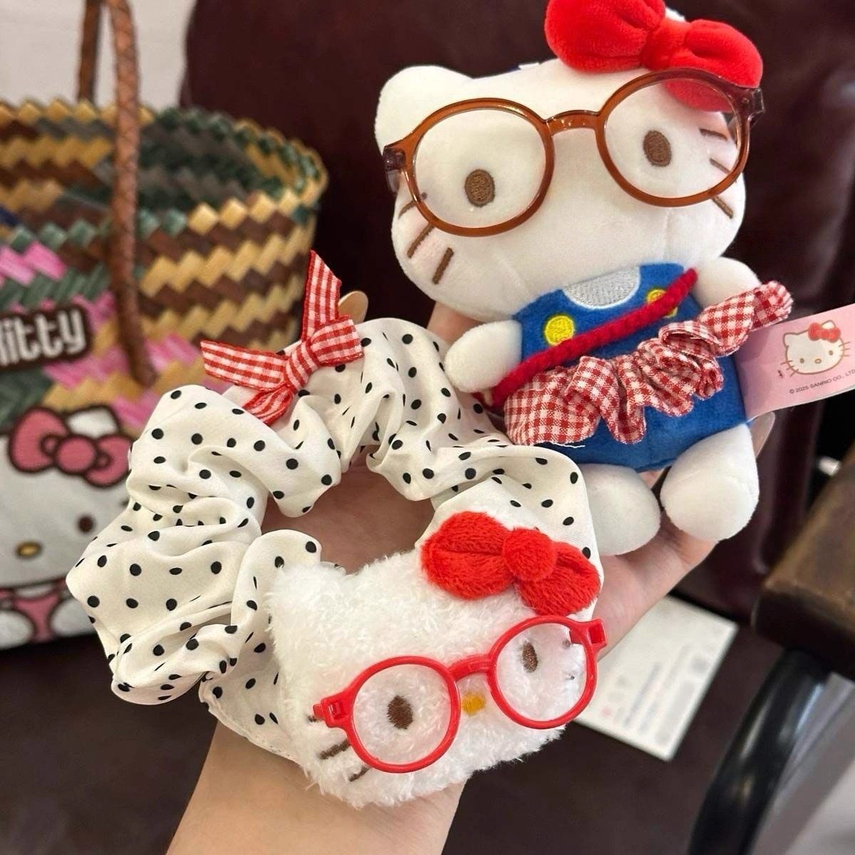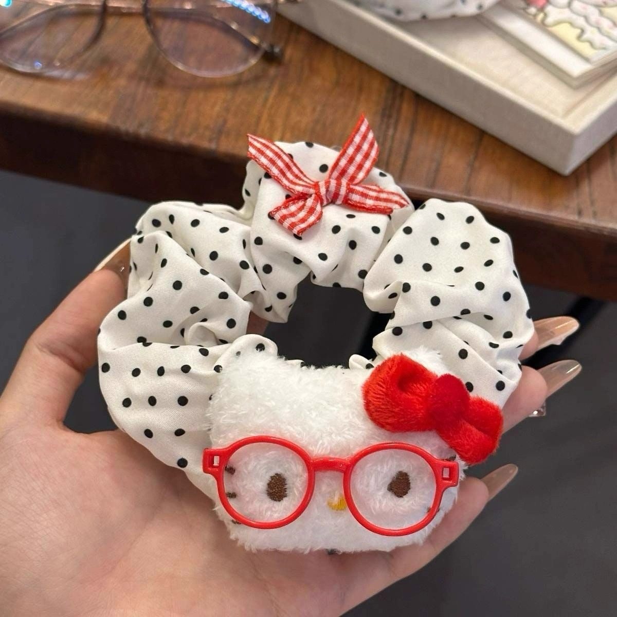Girl Kt Bow Cherry Hair Tie Scrunchie Versatile Fabric Plaid Hair Rope Bun Hair Tie Elastic Hair Rope