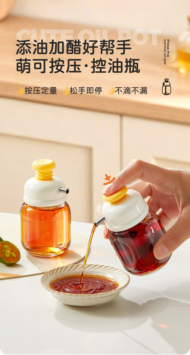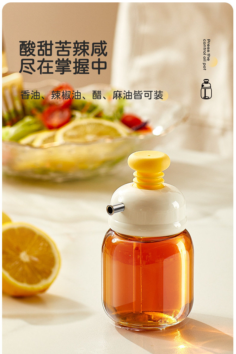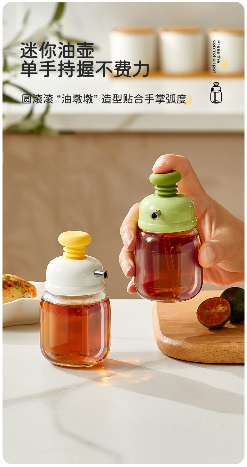 Press-Type Oil Control Dispenser for Sesame Oil and Vinegar, Glass Small Oil Bottle, Non-Stick Oil, Dumpling Vinegar Bottle for Restaurant Use