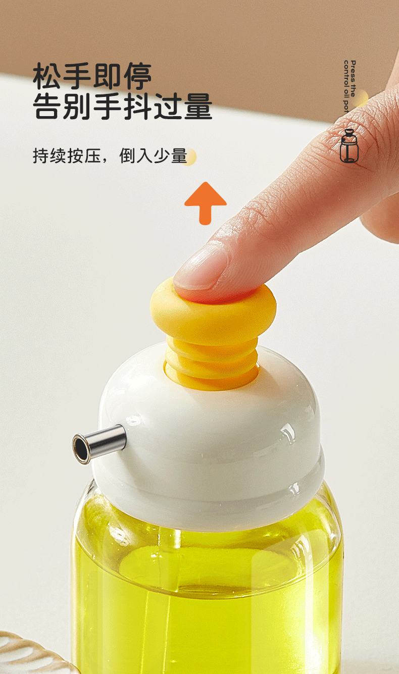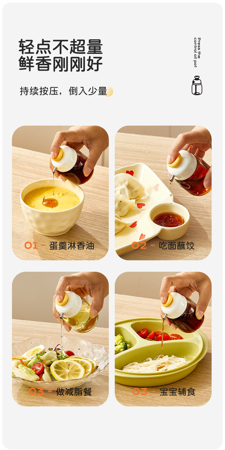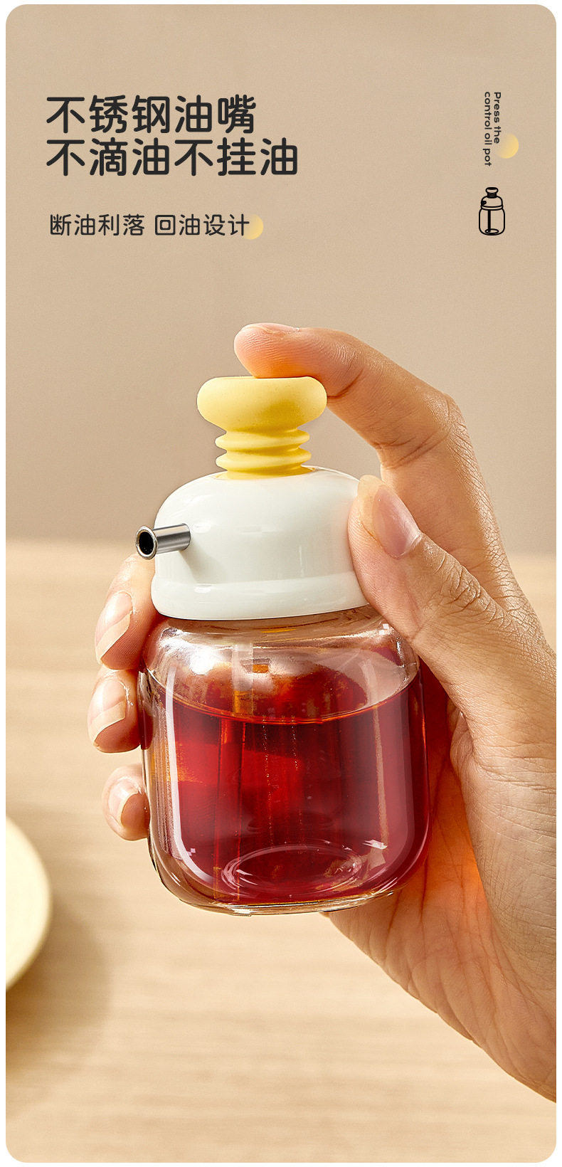 Press-Type Oil Control Dispenser for Sesame Oil and Vinegar, Glass Small Oil Bottle, Non-Stick Oil, Dumpling Vinegar Bottle for Restaurant Use