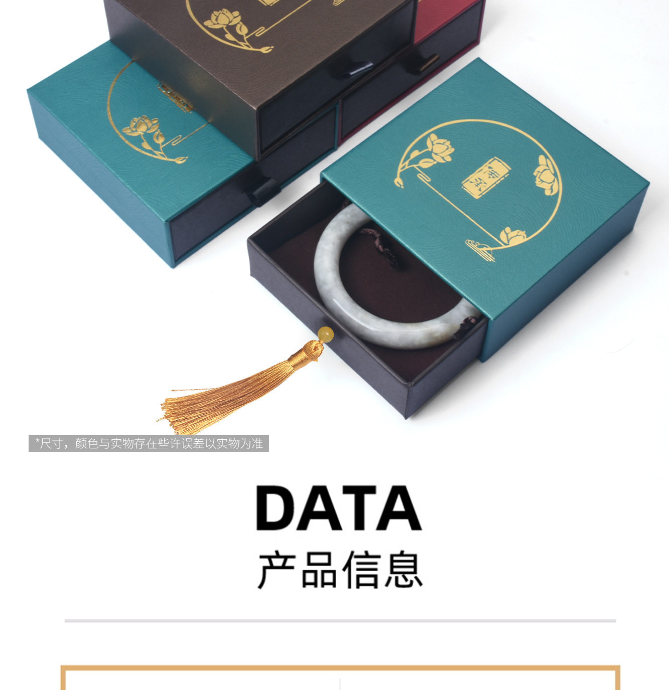 Gold-Stamped Heritage Drawer Ribbon Bracelet Box Jewelry Accessories Jade Bracelet Necklace Bracelet Storage Jewelry