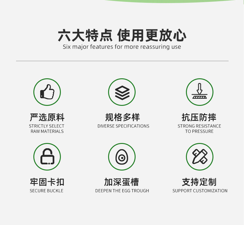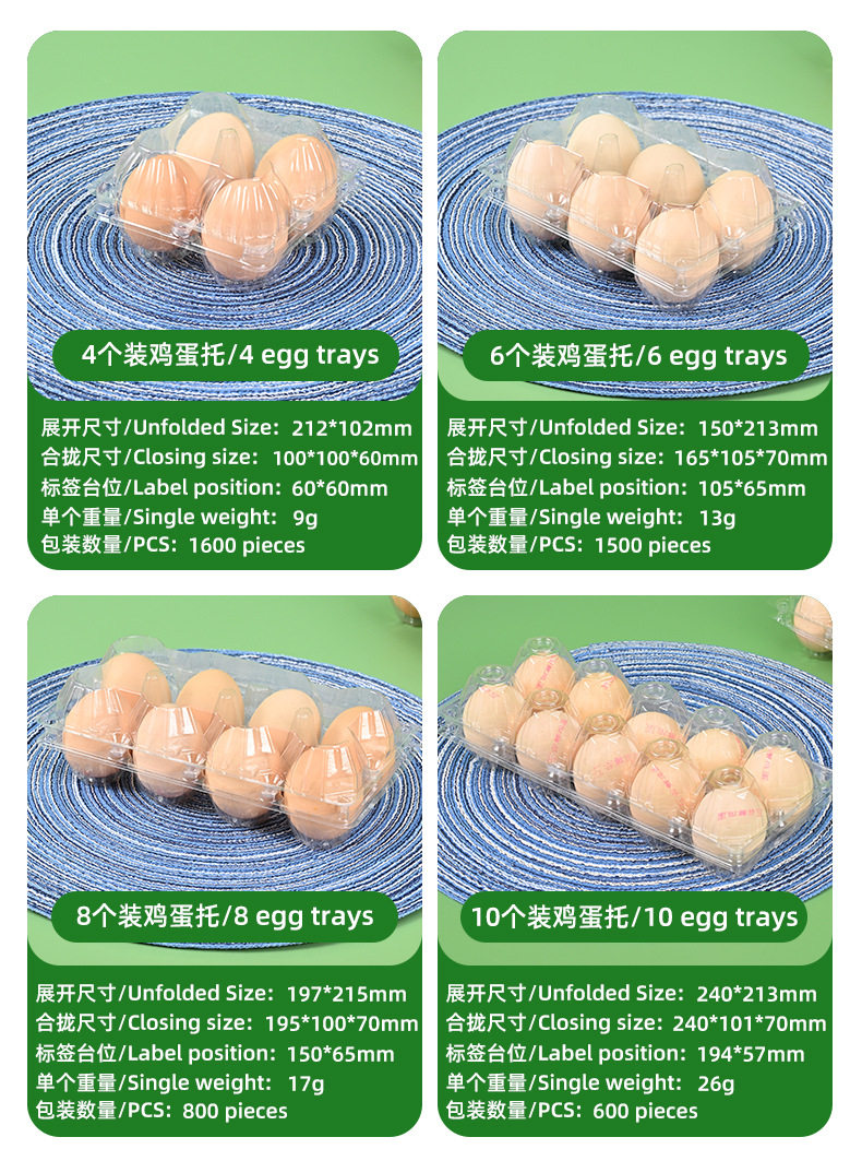 | Specifications and models | 4 egg trays,6 egg trays,8 egg trays,10 egg trays,12 egg trays (2×6),12 egg trays (3×4),20 egg trays,30 egg trays |
