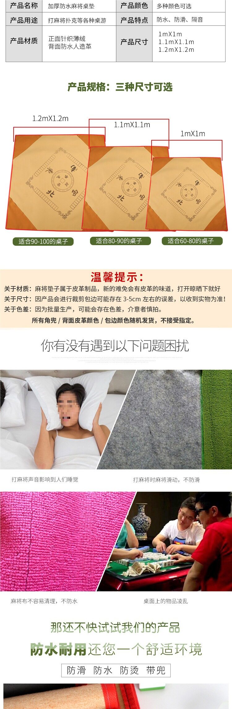 Waterproof and Soundproof Leather Mahjong Tablecloth Hand-Rubbed Household Square Mahjong Mat with Pocket Large Rice—. Ginger Tea No