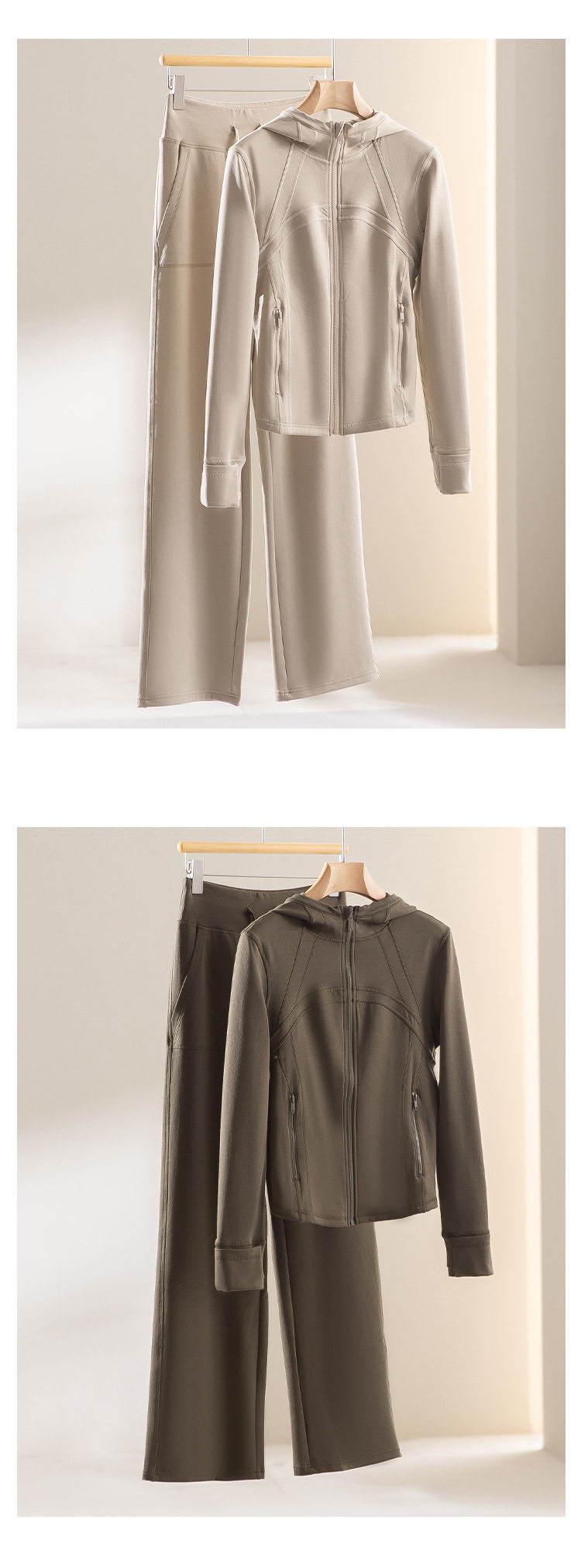 Comfortable Stretch Cotton Jacket Women's Hooded Straight Pants Sports Fitness Suit Two-Piece Slimming Look Warm Autumn and Winter Women's Clothing