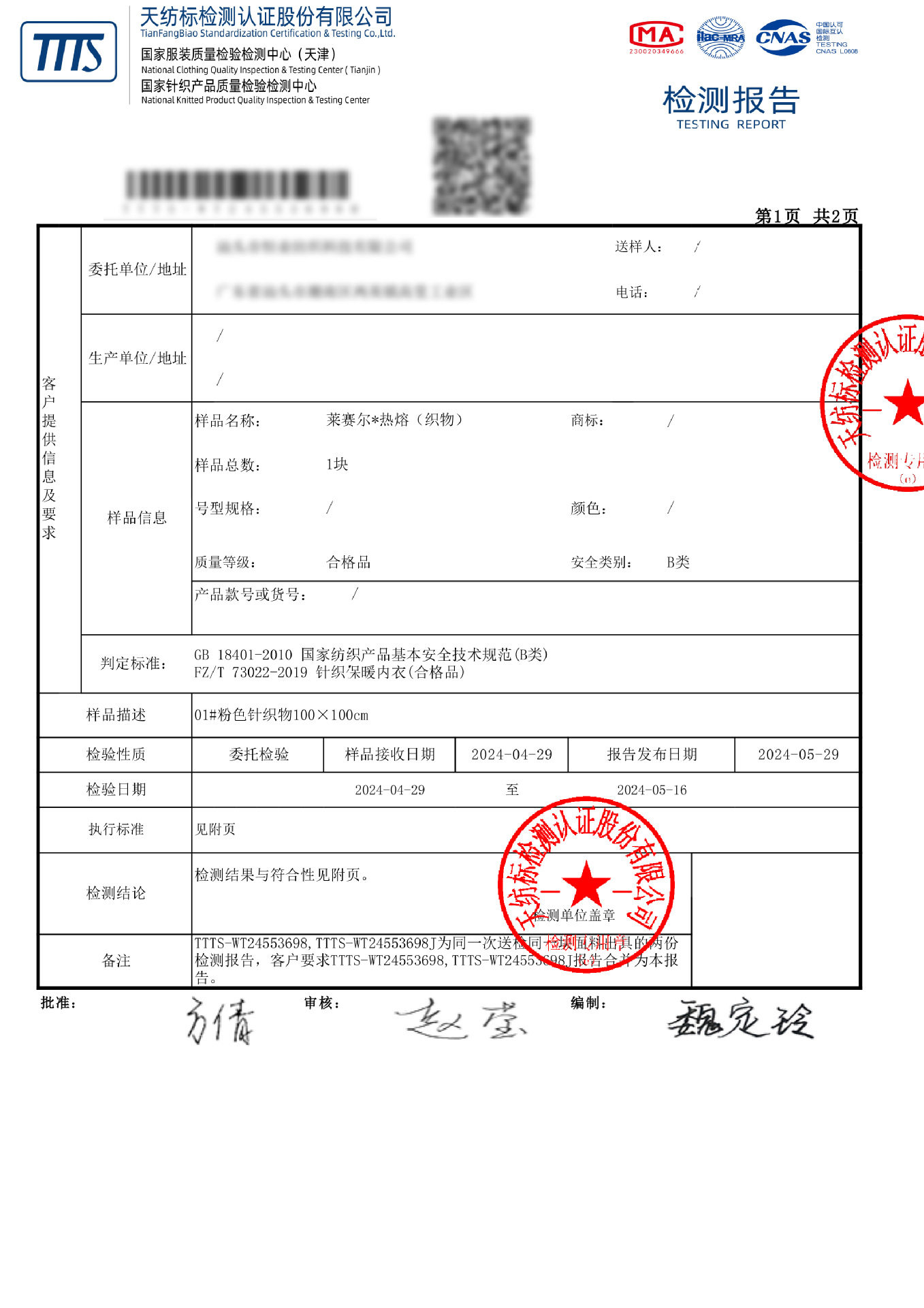 | Main fabric composition content | 30% (inclusive)-50% (exclusive) |