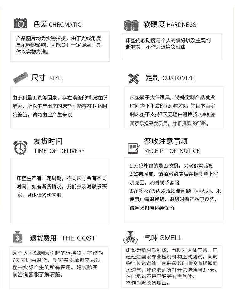 | Color | Blue box type a-20cm (silent independent spring),Blue box model b-21cm (1cm sponge + silent independent spring),Blue box c model-22cm (2cm sponge + silent independent spring),Blue box d model-23cm (3cm sponge + silent independent spring),Blue box e type-24cm (4cm sponge + silent independent spring),Blue box f type-25cm (5cm sponge + silent independent spring) |