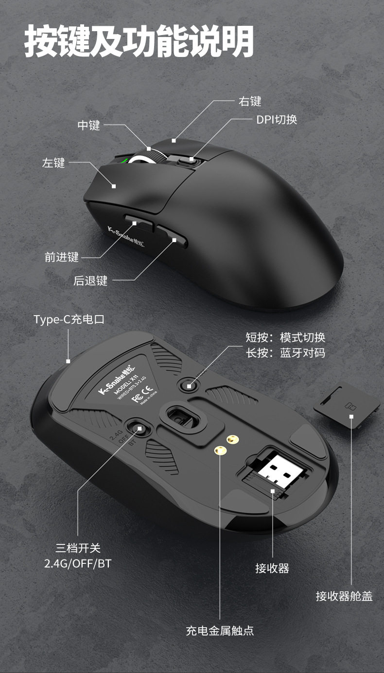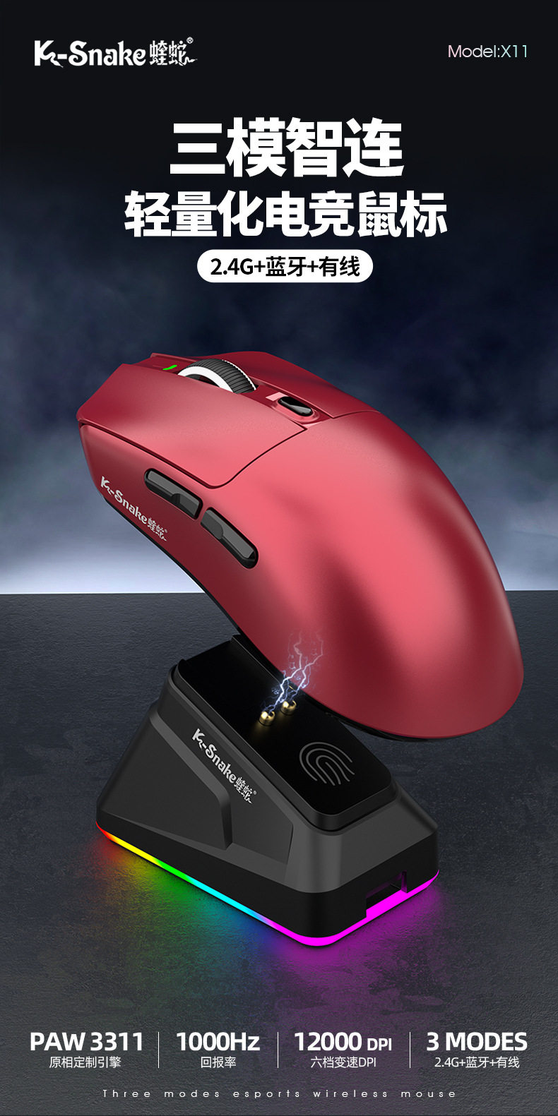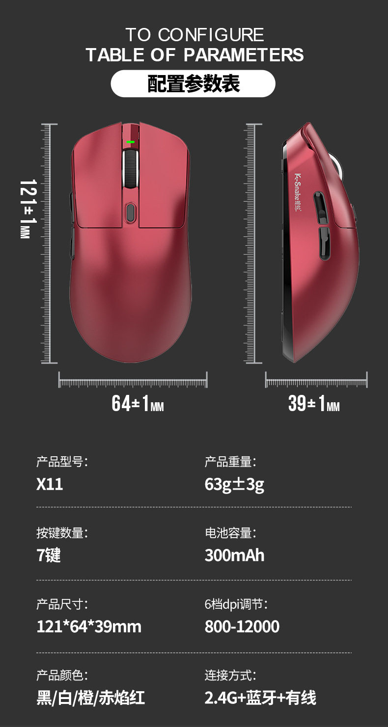 | Color | X11pro three-mode mouse [black] with rgb charging stand,X11pro three-mode mouse [white] with rgb charging stand,X11pro three-mode mouse [red] with rgb charging stand,X11pro three-mode mouse [orange] with rgb charging stand,X11pro three-mode mouse [forged black] with rgb charging stand |