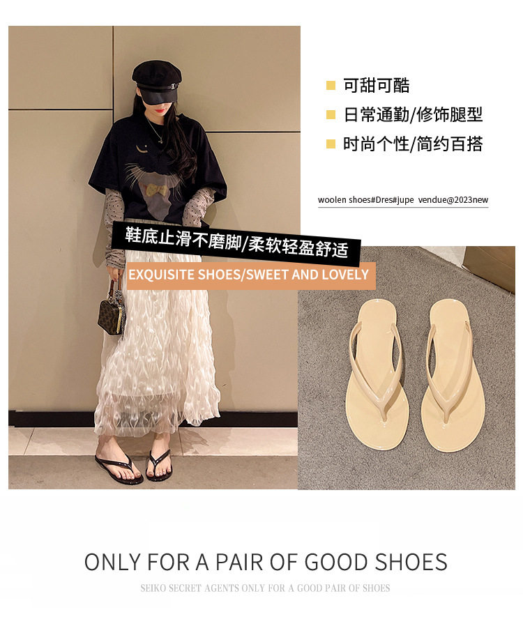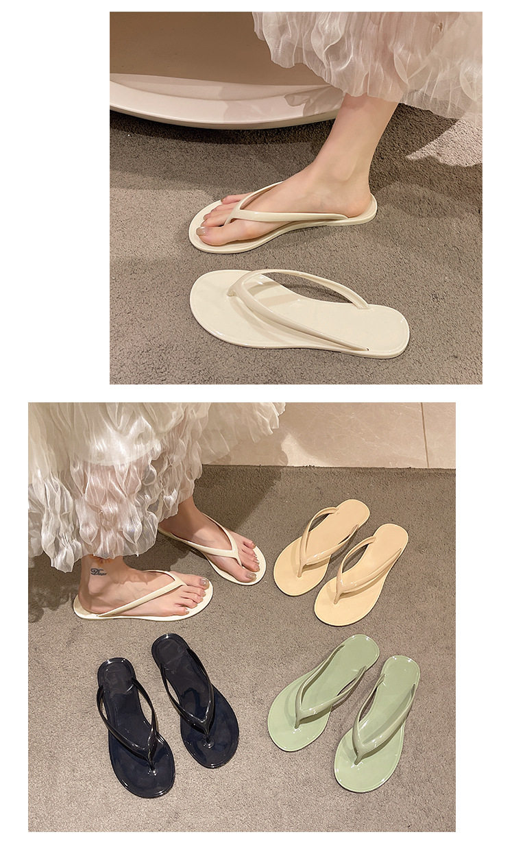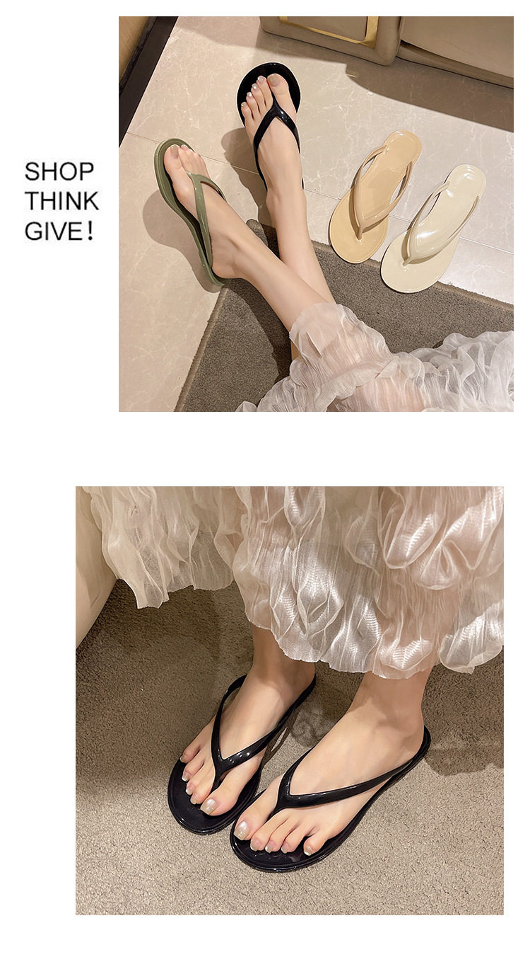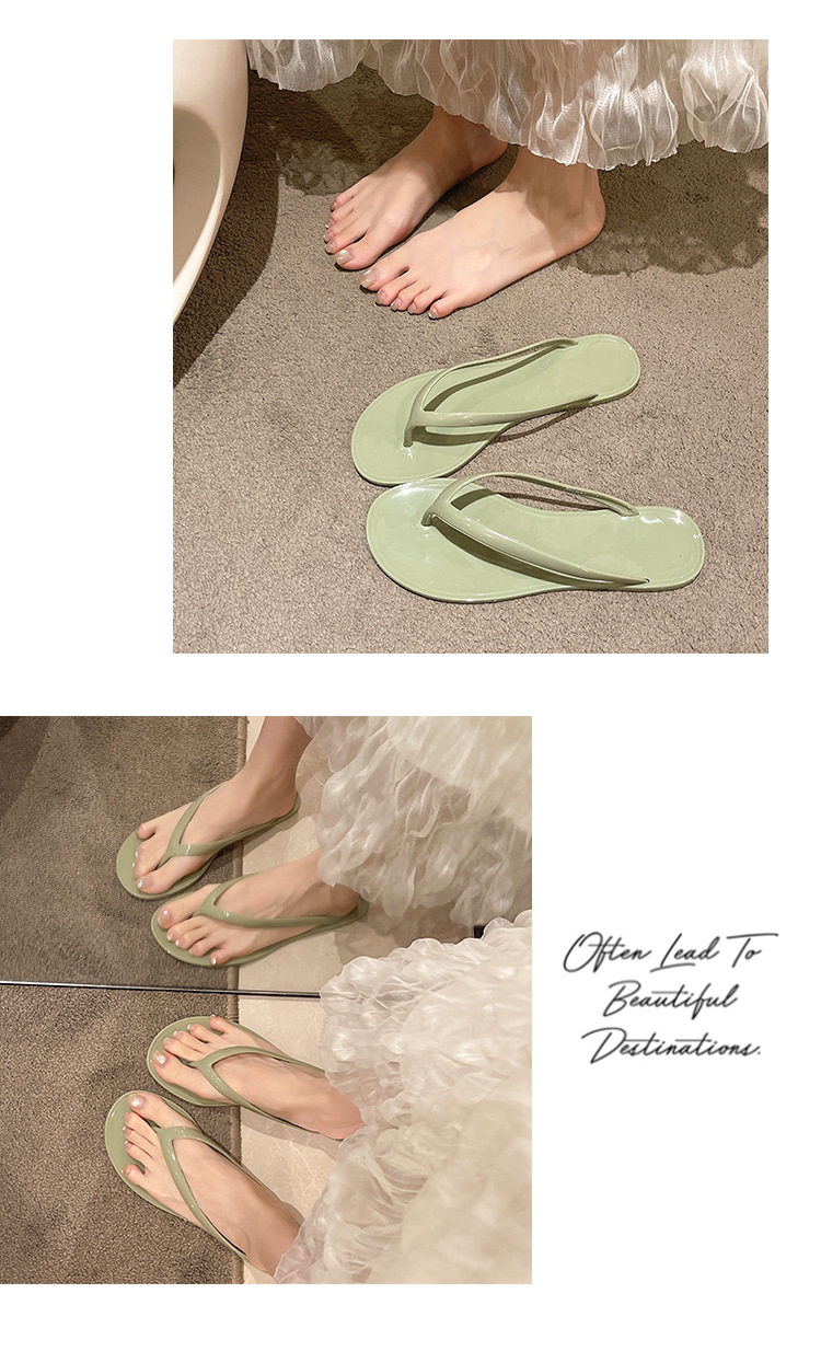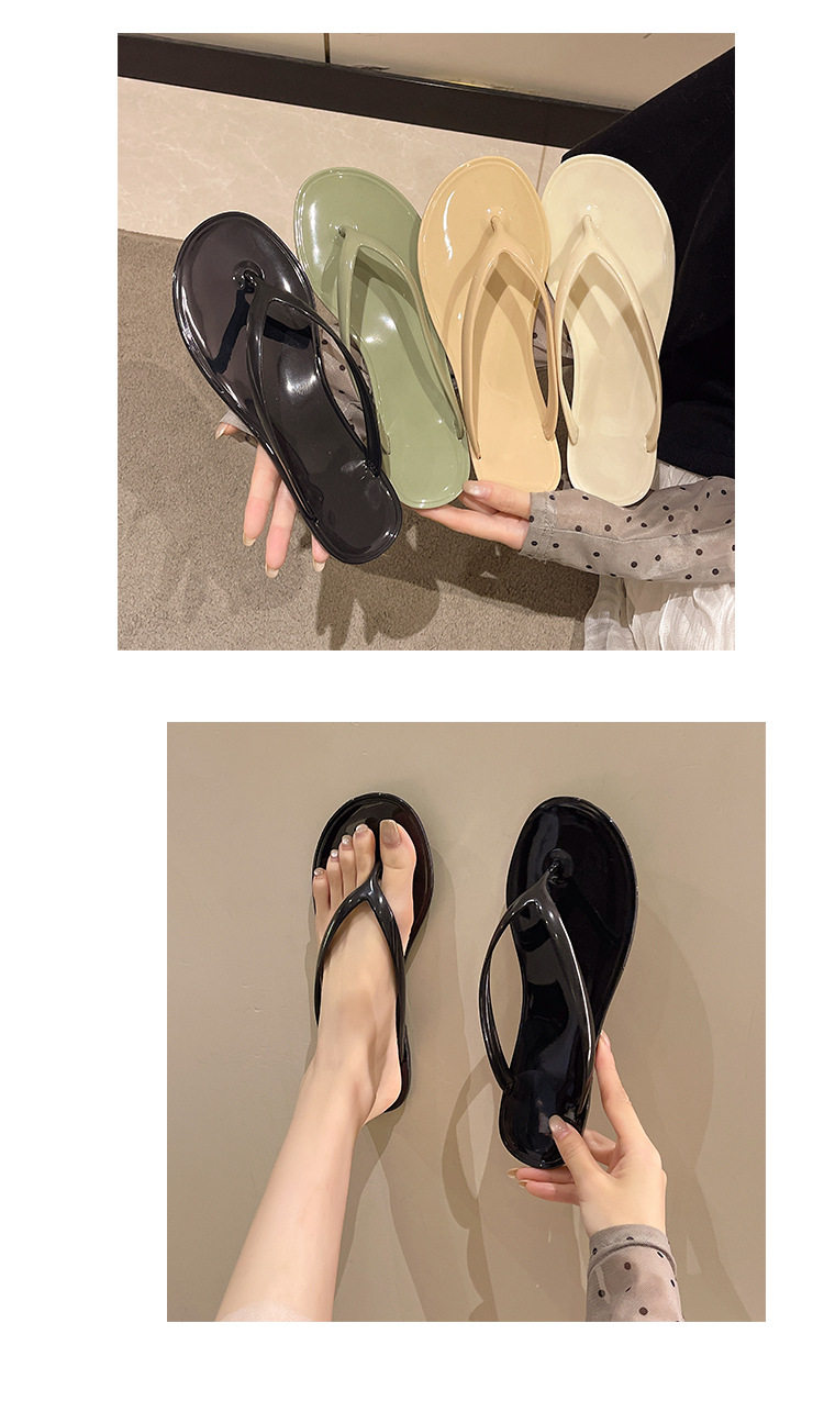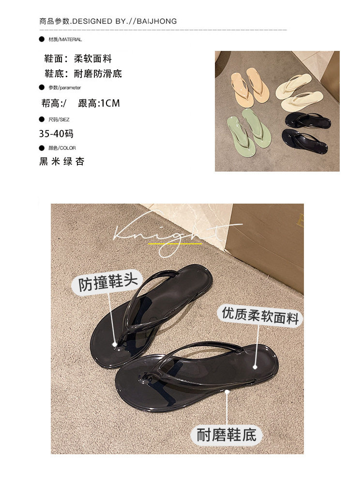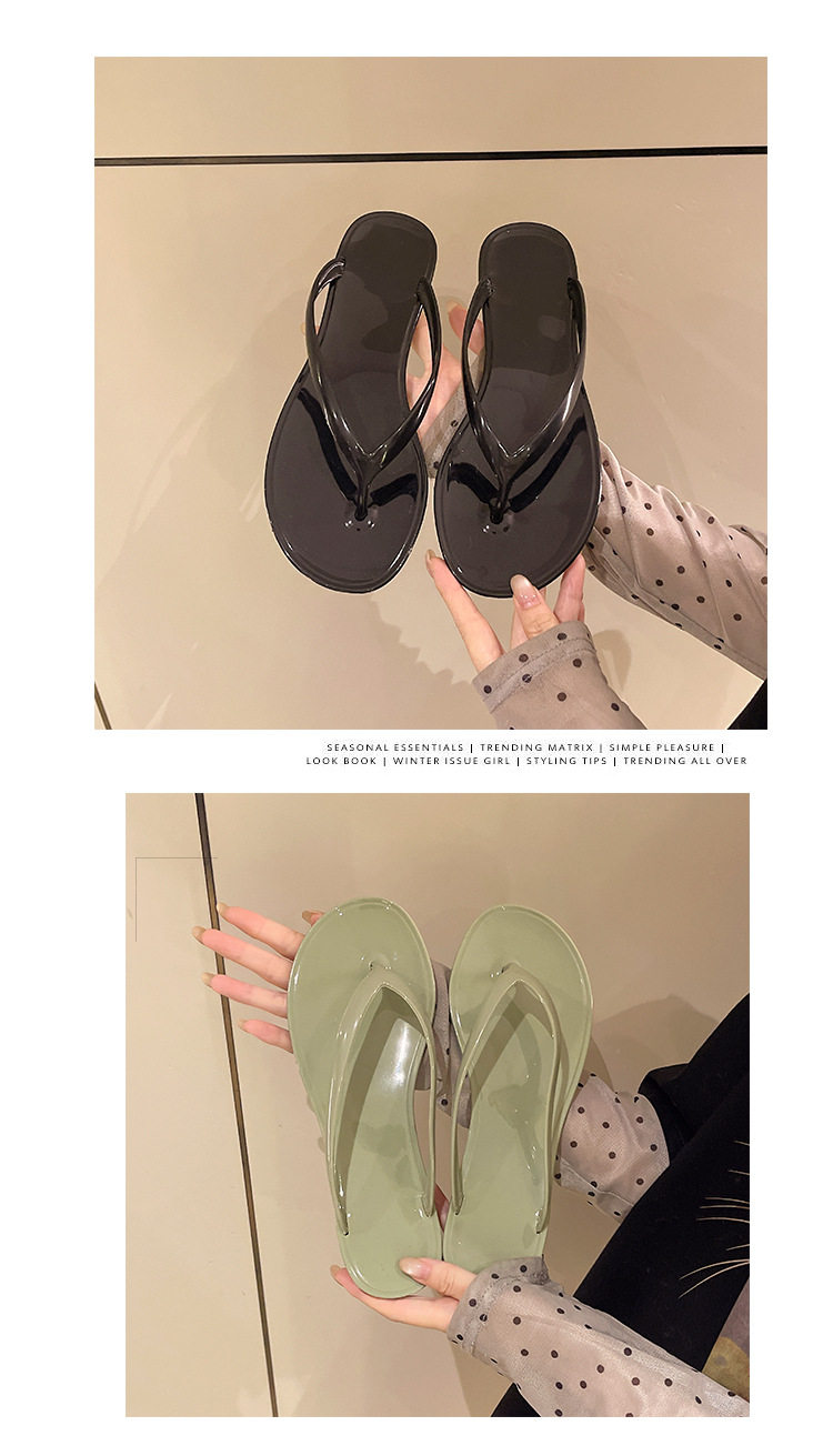 2026 Spring/Summer Crystal Fashion Versatile French Thick-Soled Flip-Flops for Outdoor Wear Jelly Toe-Post Flat Slippers