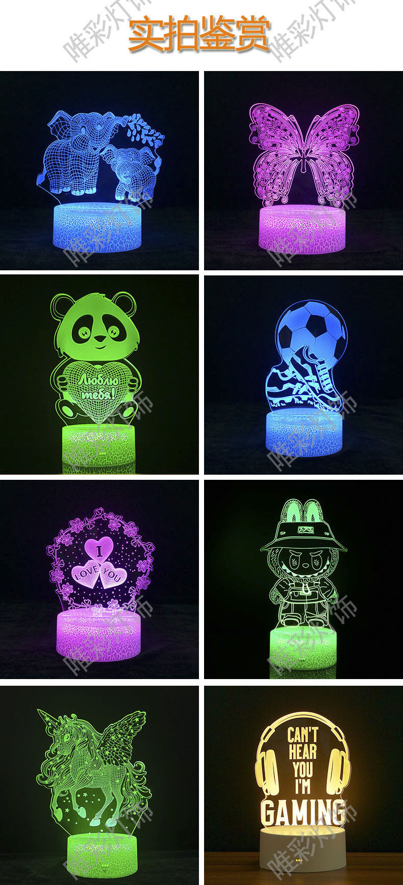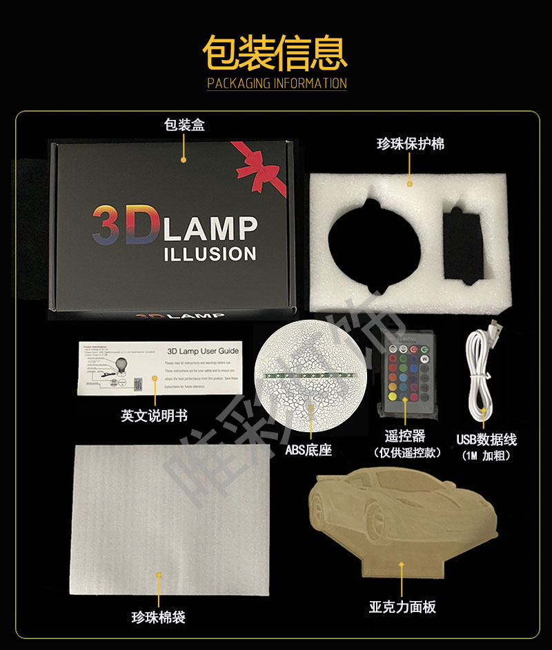 | Power of light source | Black base: colorful + touch,Black base: touch + 16-color remote control,White base: colorful + touch,White base: touch + 16-color remote control,Imitation wood grain base: colorful + touch,Imitation wood grain base: touch + 16-color remote control,Cracked base: colorful + touch,Cracked base: touch + 16-color remote control,Single piece acrylic board |