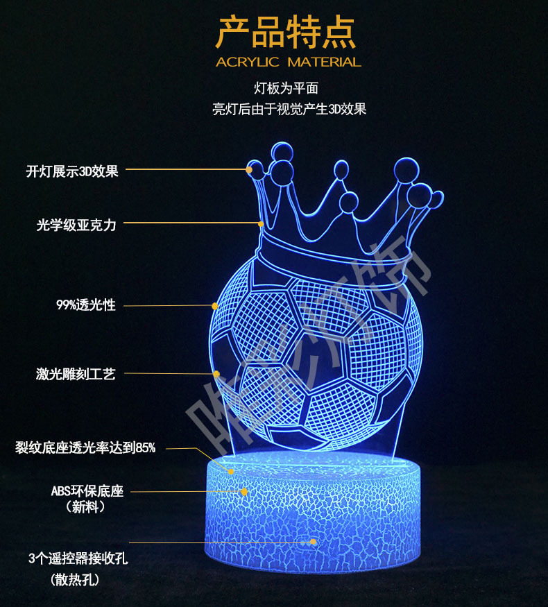 Cross-Border 3D Night Light Acrylic Football Atmosphere Lamp Bedside Lamp Desktop Ornament Creative Holiday Gift Projector