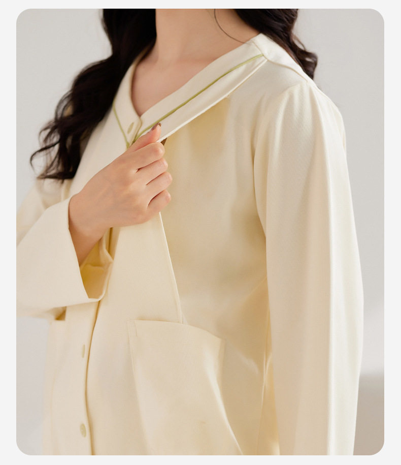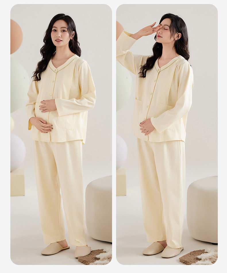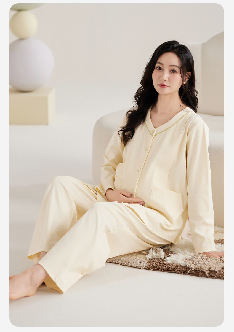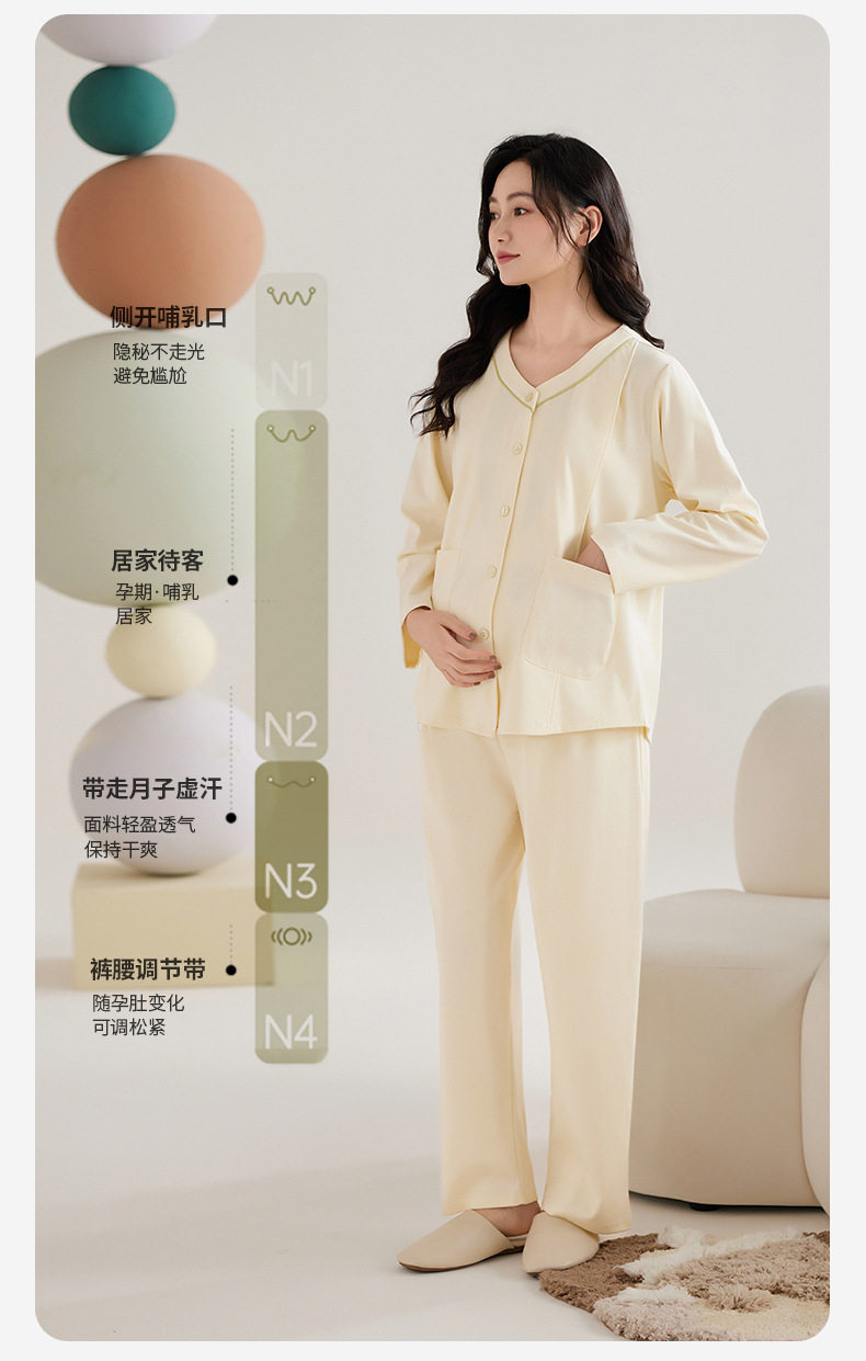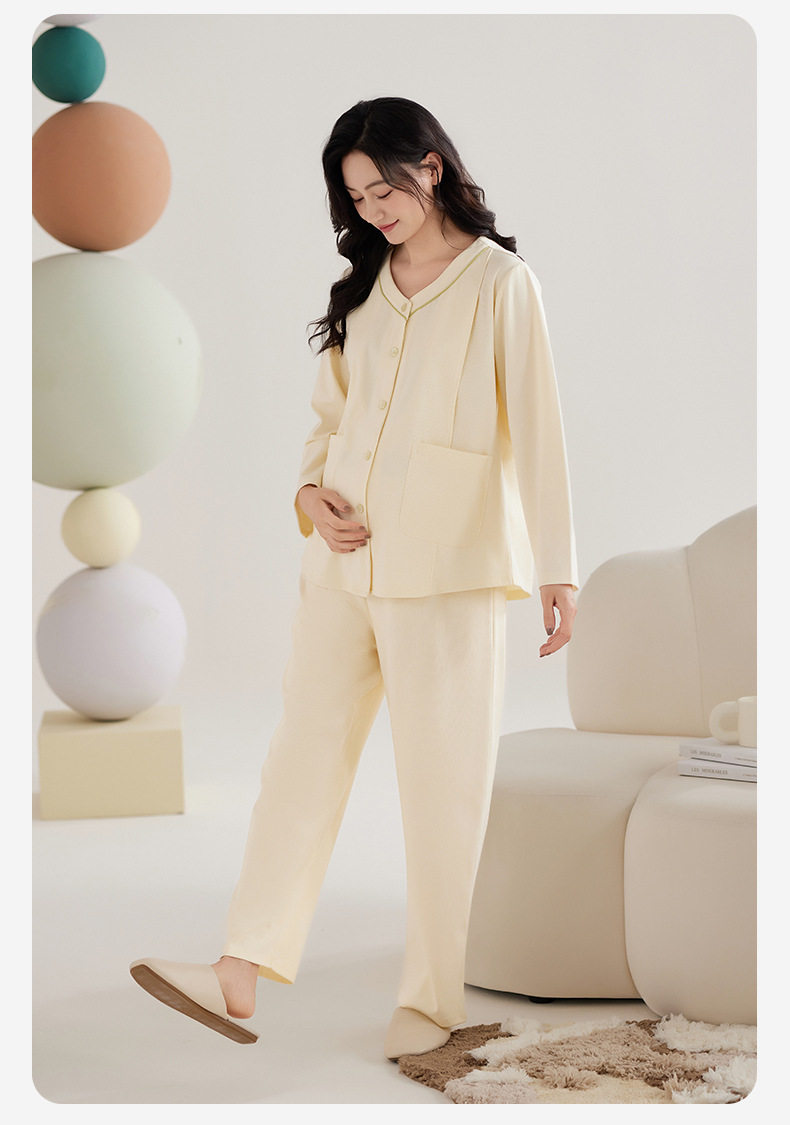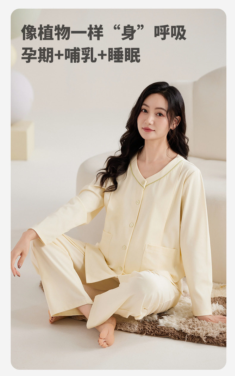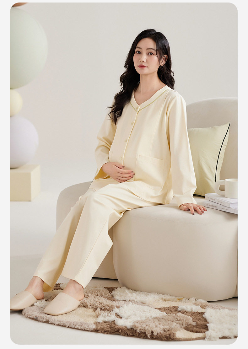 Category 5A Pure Cotton Confinement Clothing Spring and Autum Pure Color Cardigan Maternity Postpartum Breastfeeding Clothing Prenatal Maternity Pajamas for Women