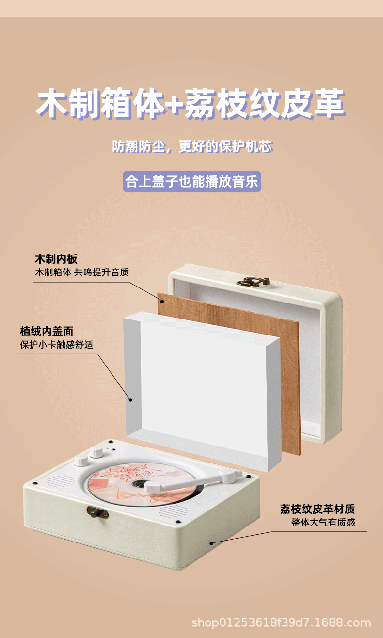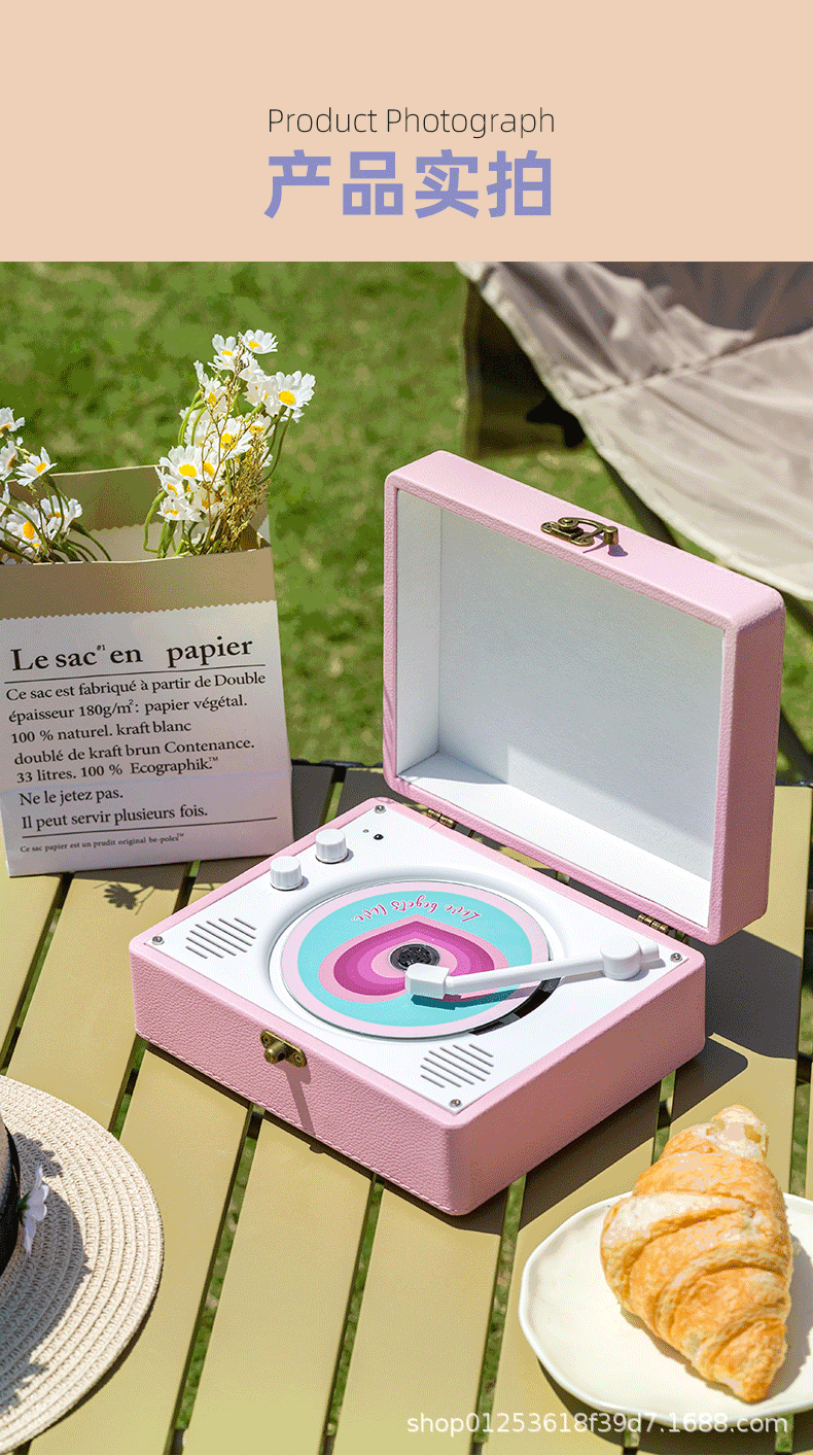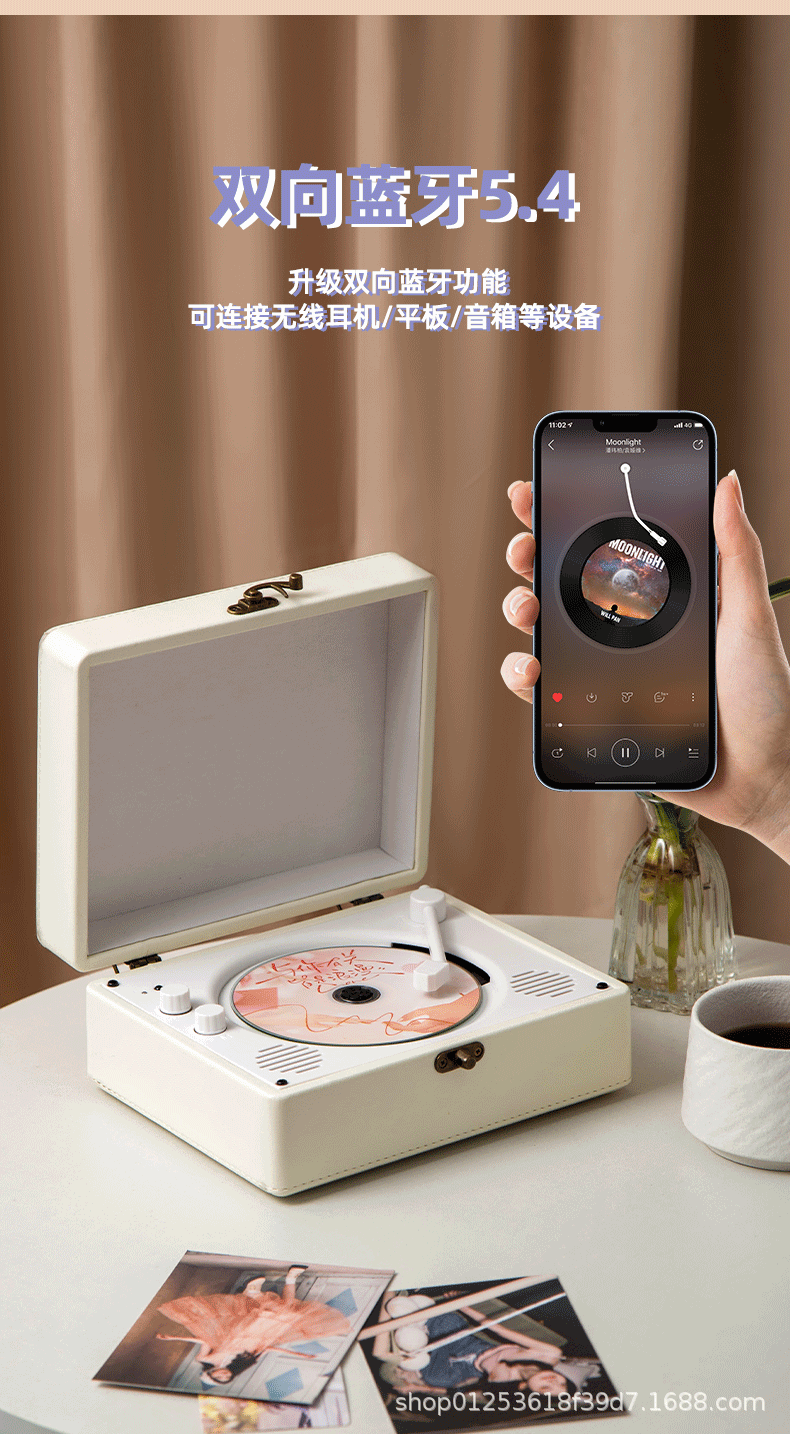 Cd Player Player Star Album Player Retro Bluetooth Cd Record Player Leather Birthday Gift Cross-Border Small