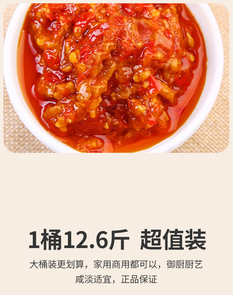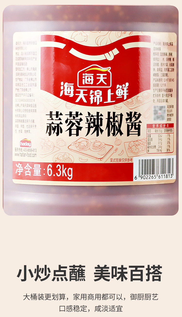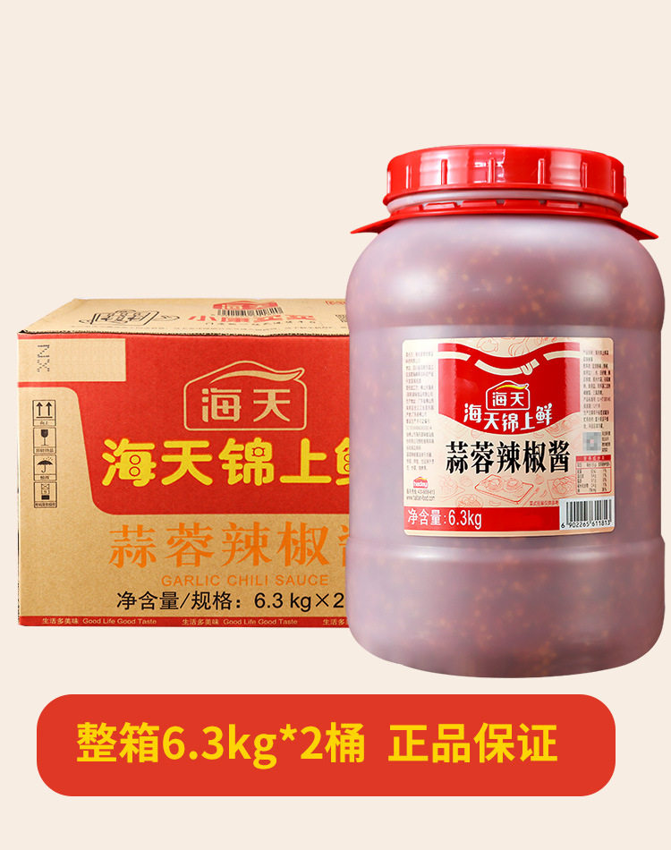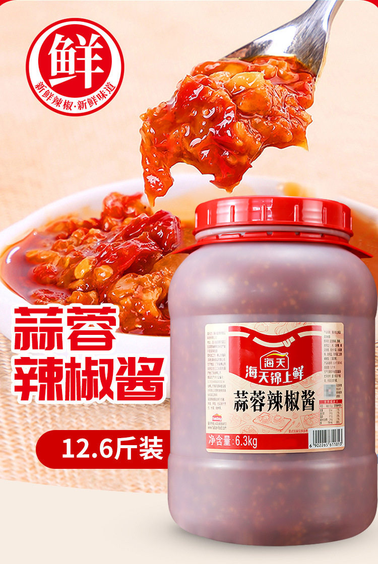 Haitianjin Fresh Garlic Chili Sauce 6.3kg Commercial Catering Large Barrel Bbq Hot Pot Bibimbap Chili Sauce