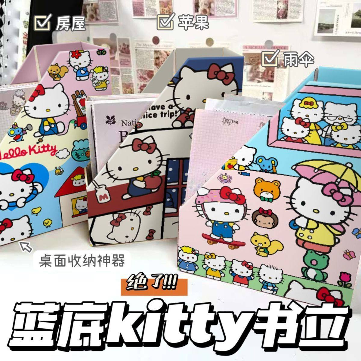 Popular Blue Background Kt Cat Xiaohongshu Same Style Paper Book Stand Bookshelf Desktop Notebook Book Storage Rack