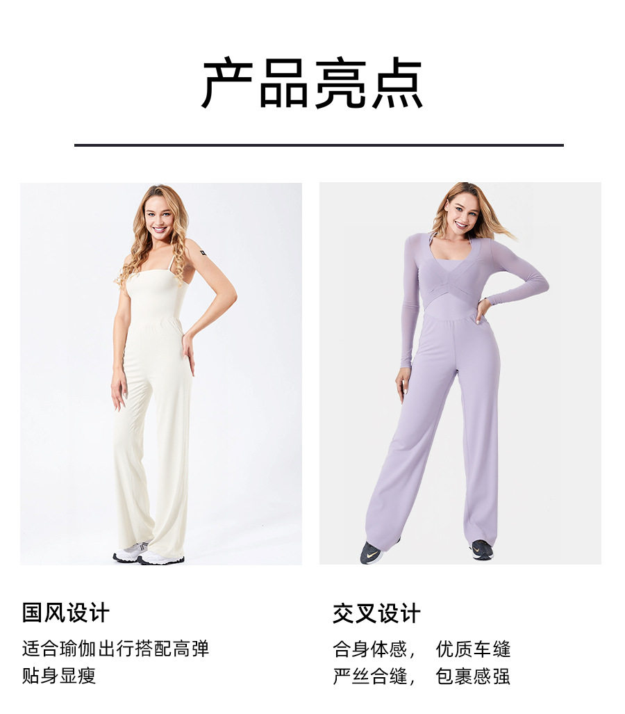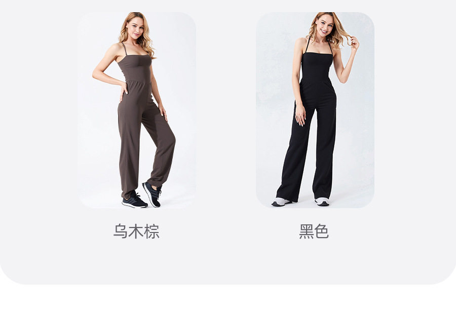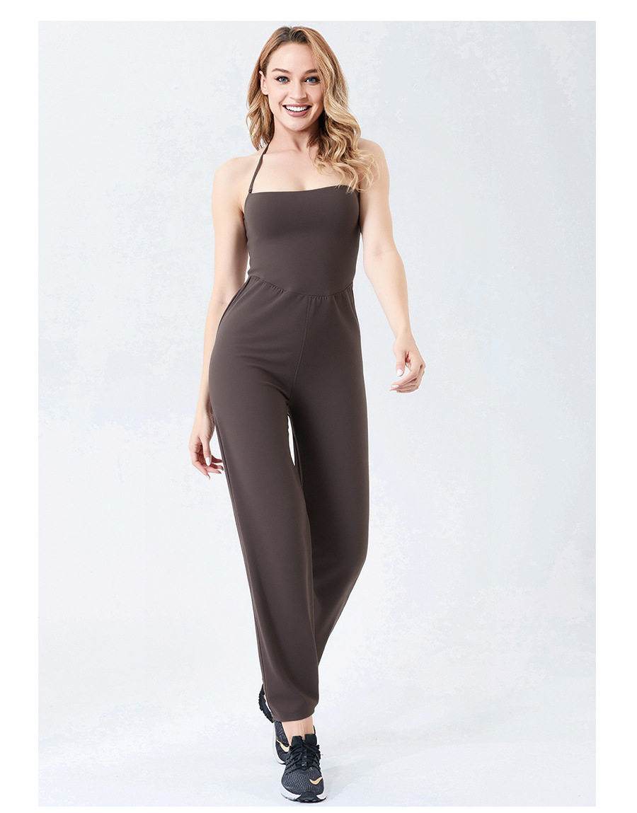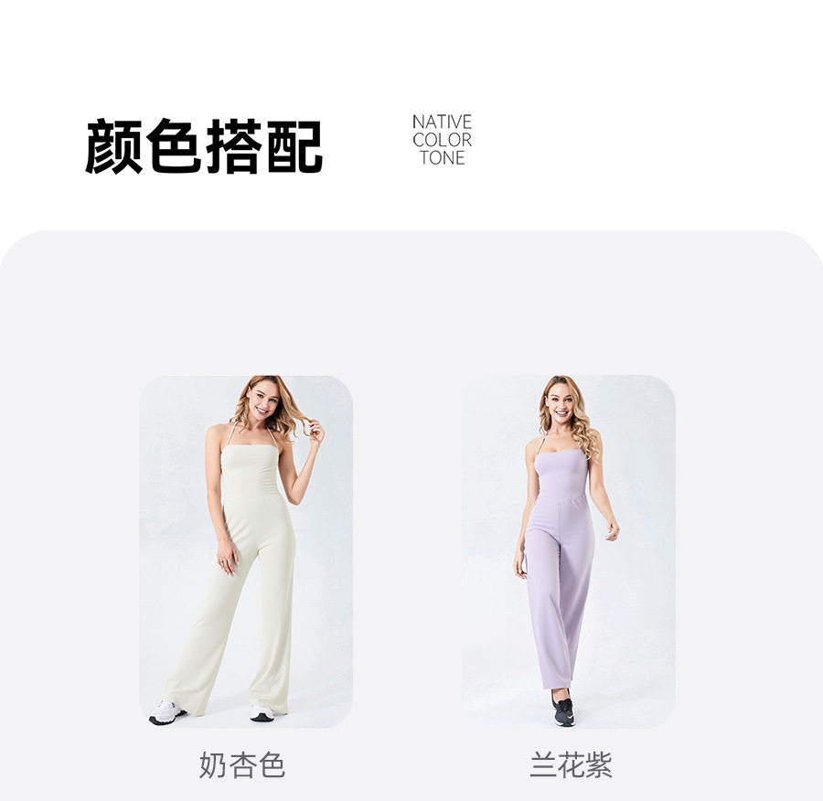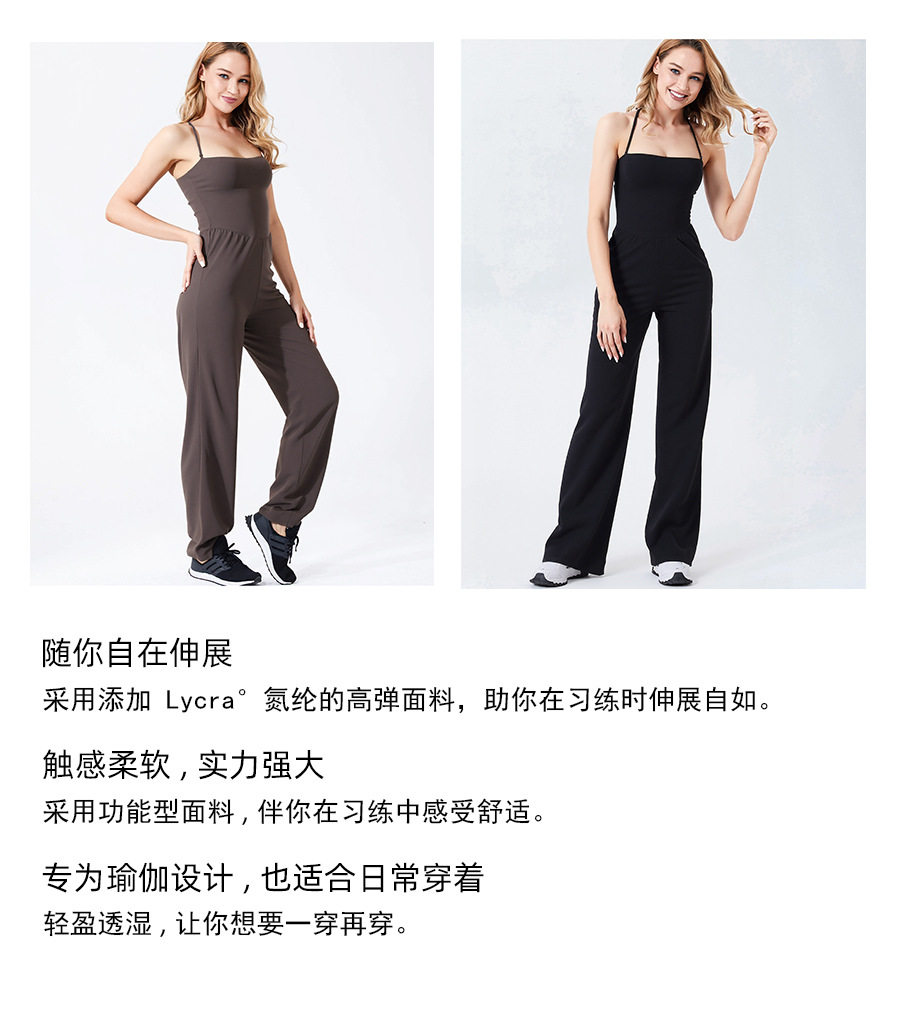 Autumn and Winter Yoga Clothes for Women, Tight-Fitting Nude Jumpsuits, Halterneck Two-Wear Sports Fitness Running Jumpsuits, Straight Pants Suits