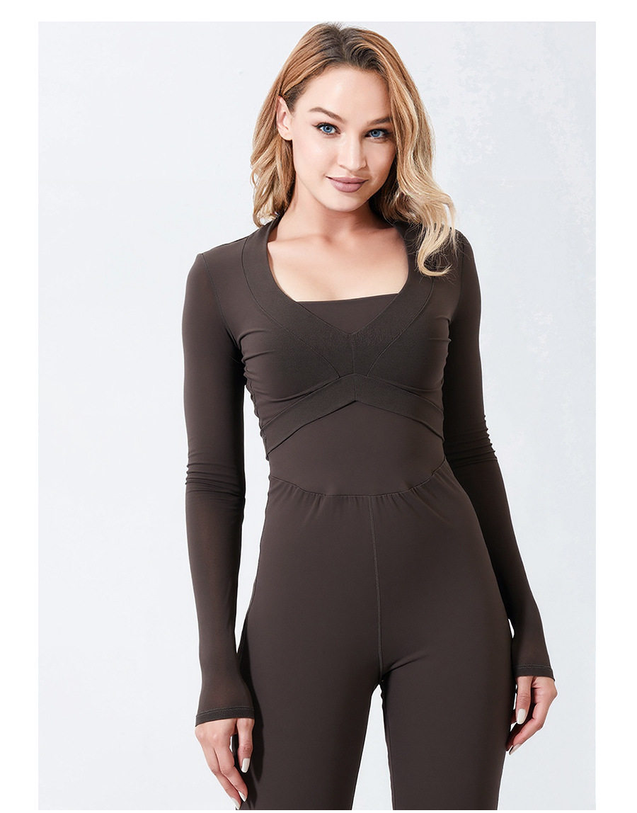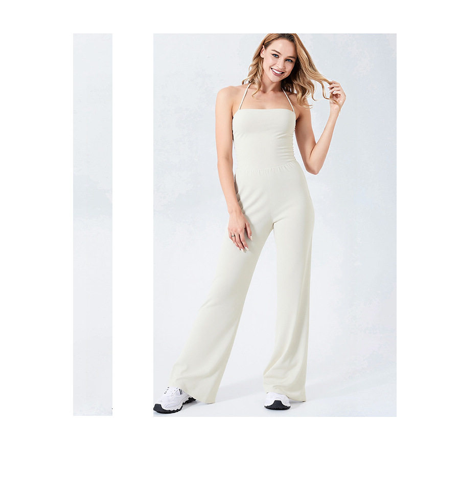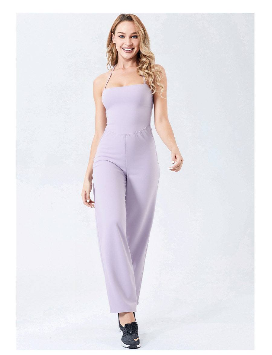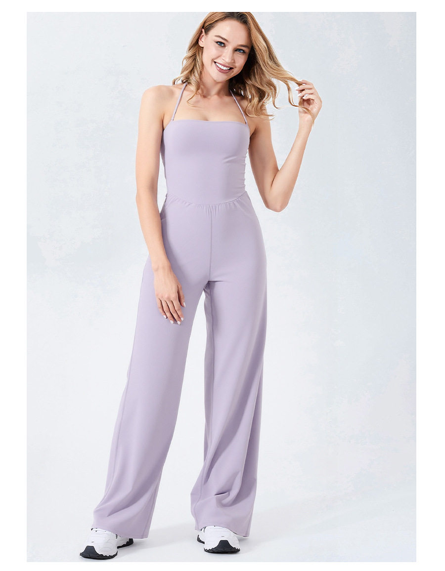 Autumn and Winter Yoga Clothes for Women, Tight-Fitting Nude Jumpsuits, Halterneck Two-Wear Sports Fitness Running Jumpsuits, Straight Pants Suits