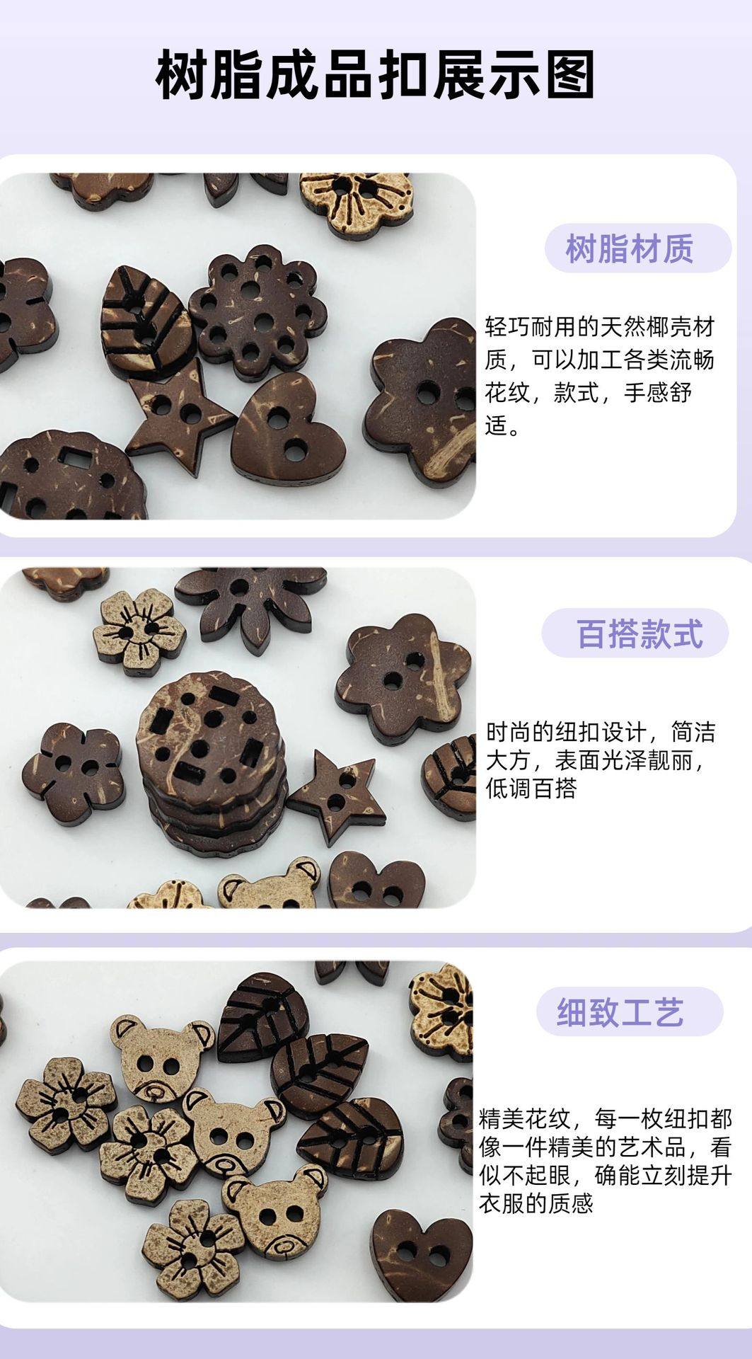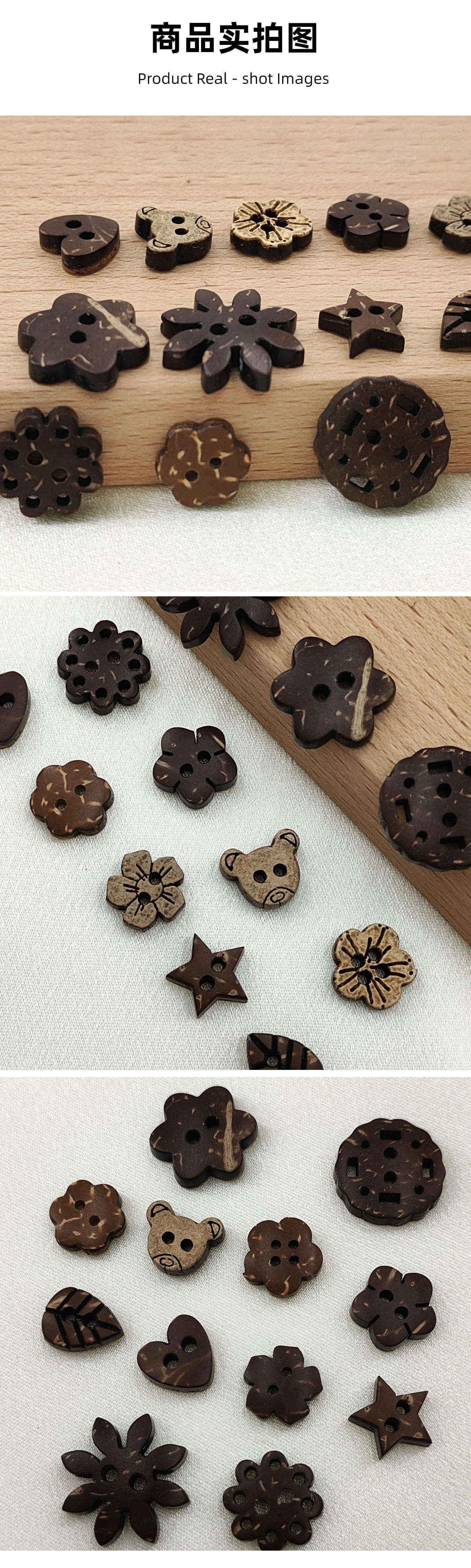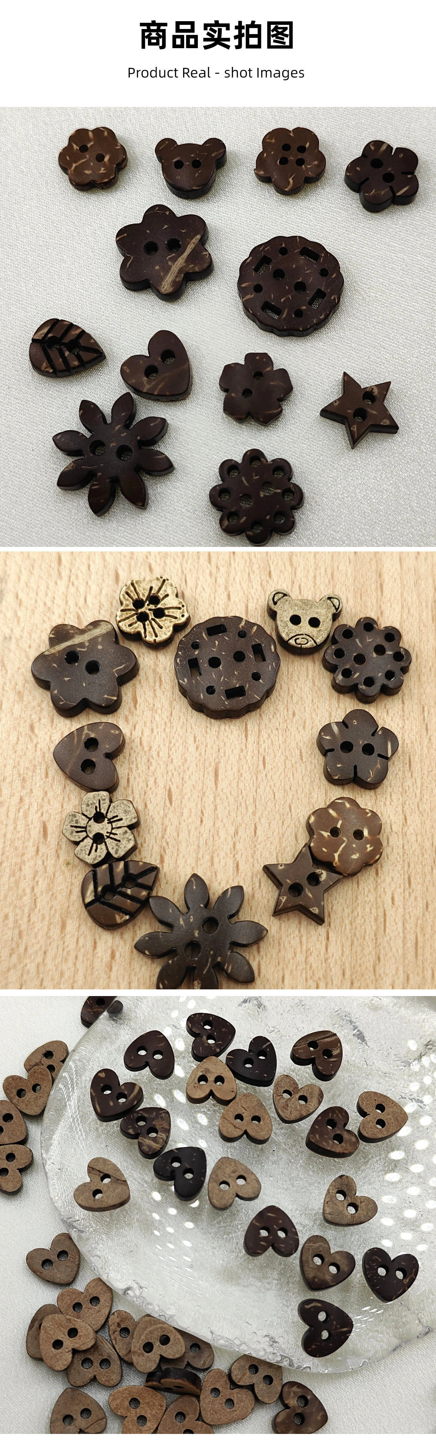 Supply of 10 Beautiful and Cute Coconut Shell Buttons, Large Quantities in Stock, Direct Sales from the Manufacturer