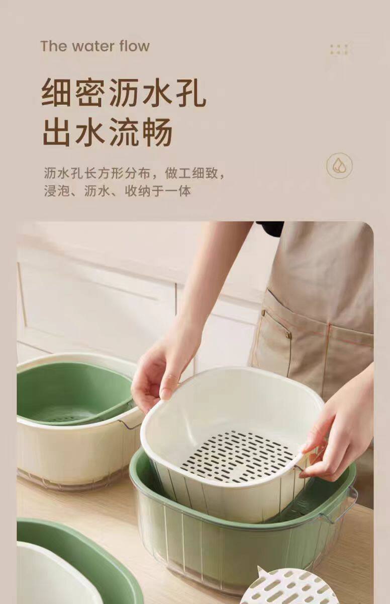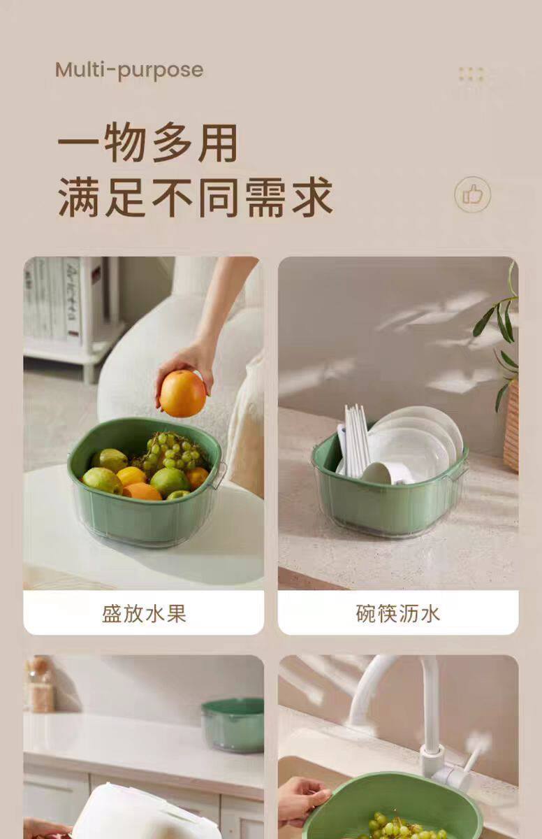 Double-Layer Extra Thick Vegetable Washing and Draining Basket, Plastic Kitchen Water Basket, Multi-Purpose Living Room Vegetable Basket, Household Vegetable Basket, Fruit and Vegetables
