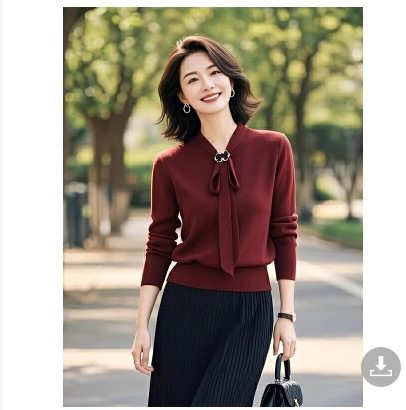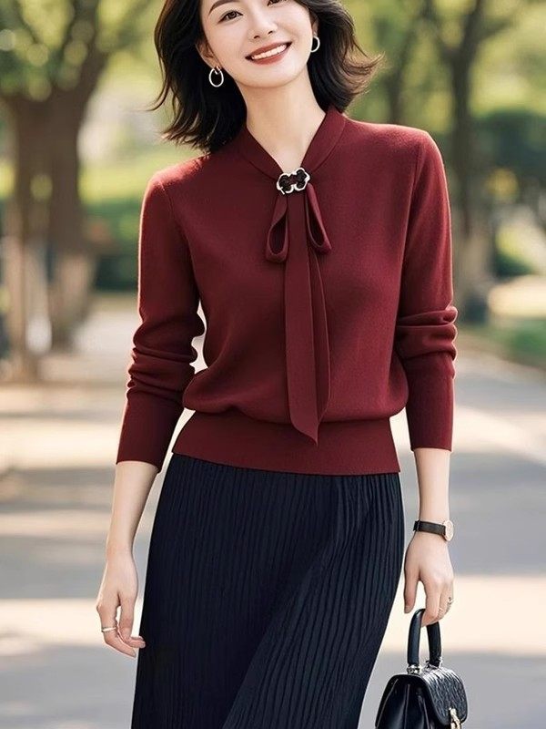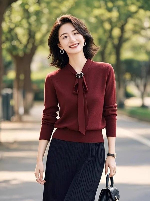 Red Lace-Up Slim Long-Sleeved Knitwear for Women in Spring and Autum New Style, Elegant and Light, Mature Style with Skirt Two-Piece Set