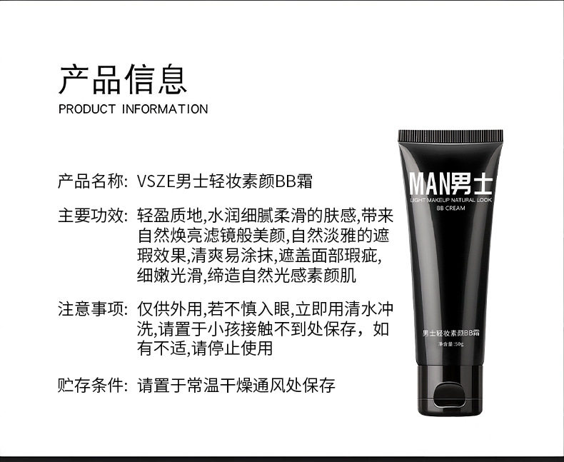 | Product name | Vsze men's light makeup bb cream |