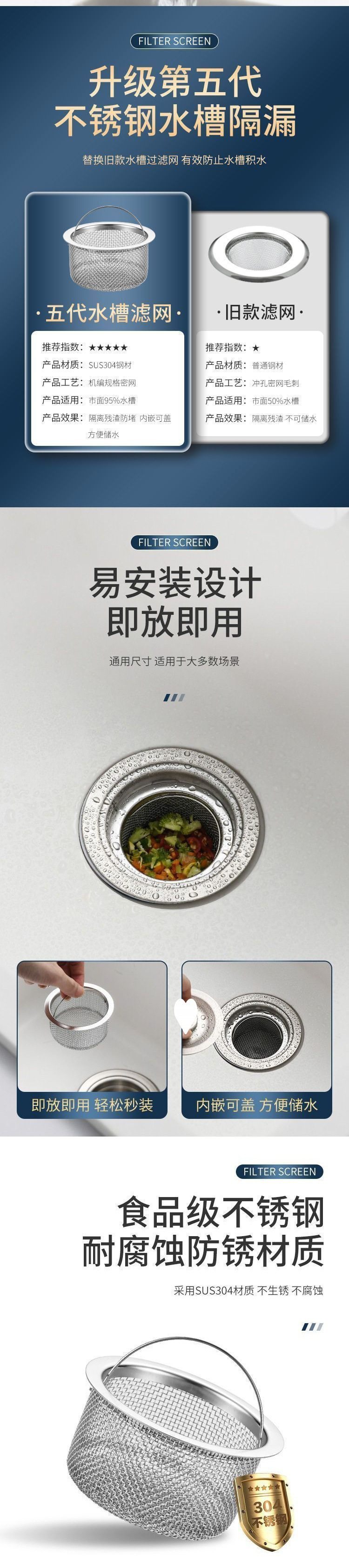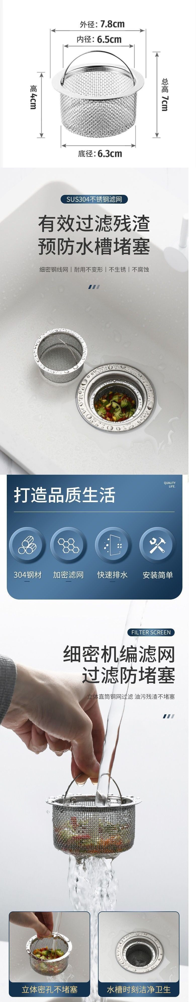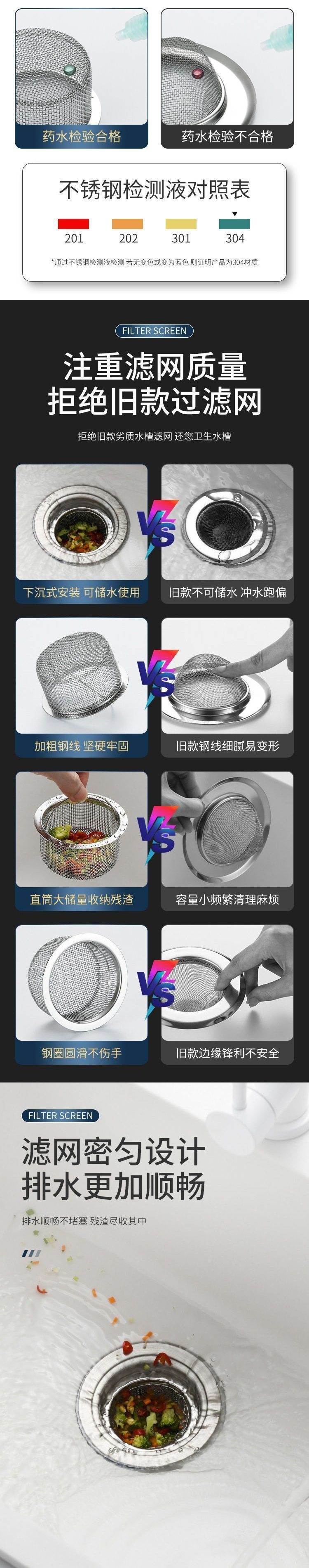 | Size | [high-quality rust-proof sink mesh]/anti-clogging/fast drainage |