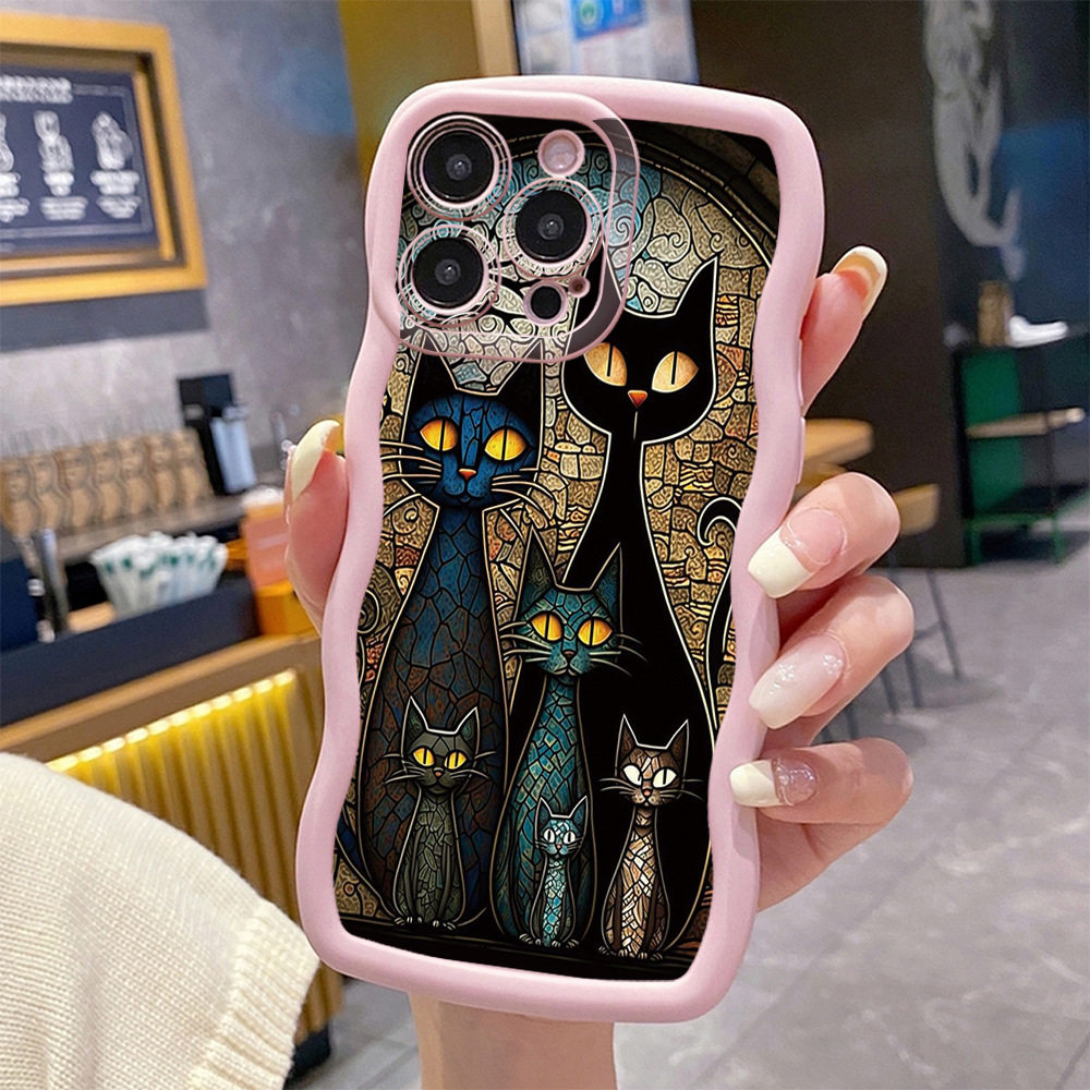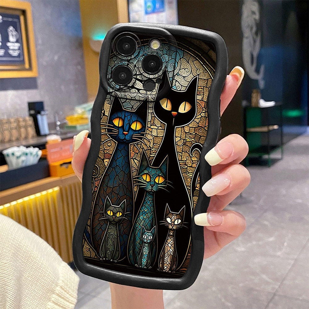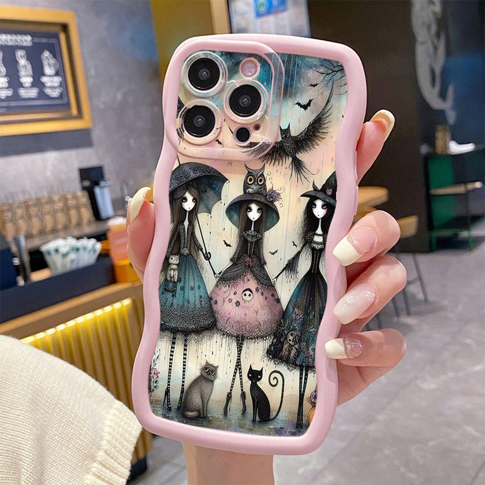 Suitable for Apple iPhone 16Promax Protective Case Black Cat Magic Girl Wavy Edge Anti-Fall Phone Case