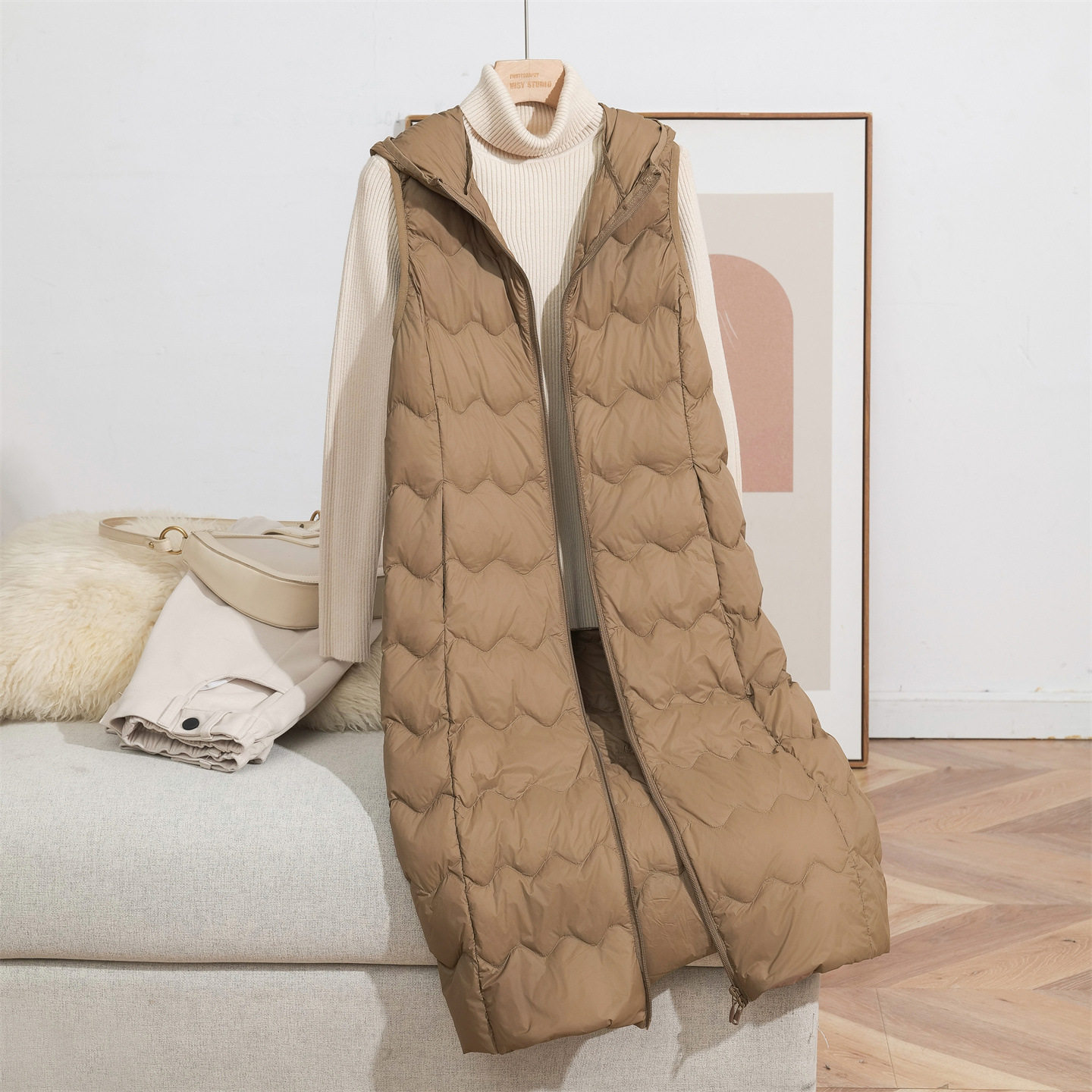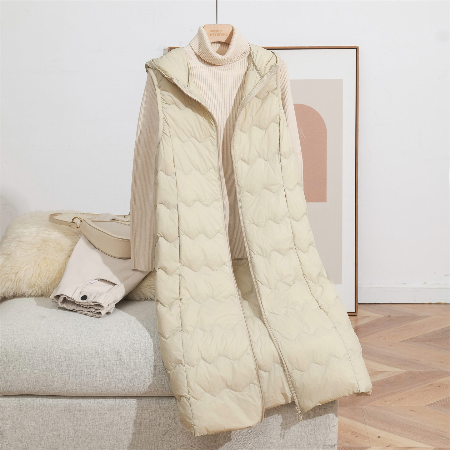 Youjia Clothing Lightweight down Vest for Women, Long Hooded Style, 2025 Autumn/Winter New Model, White Duck down Inner Liner, Warm Vest
