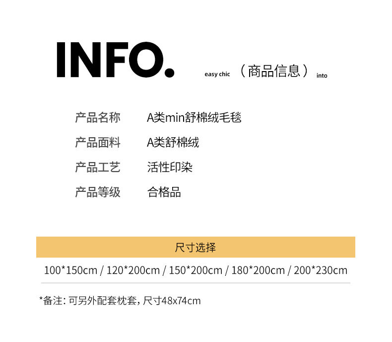 Size specifications Single blanket-100x150cm [shawl blanket/leg blanket],Single blanket-120x200cm [children's blanket],Single blanket-150x200cm [single blanket],Single blanket-180x200cm [extra large single blanket],Single blanket-200x230cm [double blanket],[two-piece blanket set] 120x200cm + one pillowcase,[three-piece blanket set] 150x200cm + a pair of pillowcases,[three-piece blanket set] 180x200cm + a pair of pillowcases,[three-piece blanket set] 200x230cm + pair of pillowcases