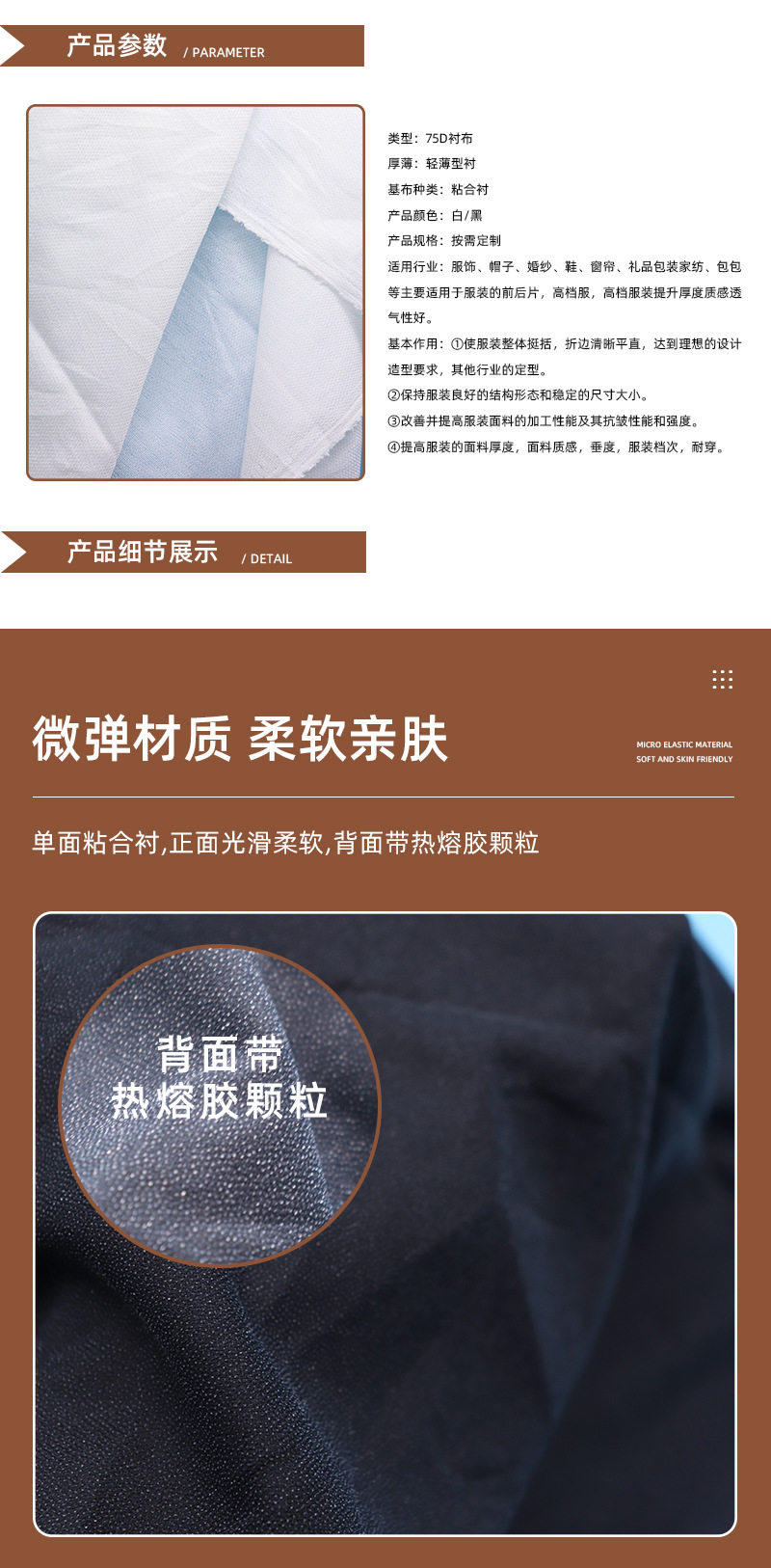 [75D Interlining] Manufacturer Wholesale Fusible Interlining Composite Interlining 1.5m Accessories Suit Coat Cheongsam Hot Ironing Lining