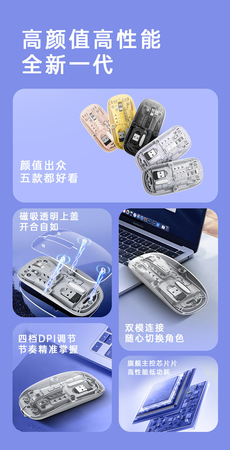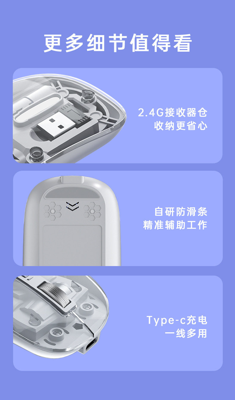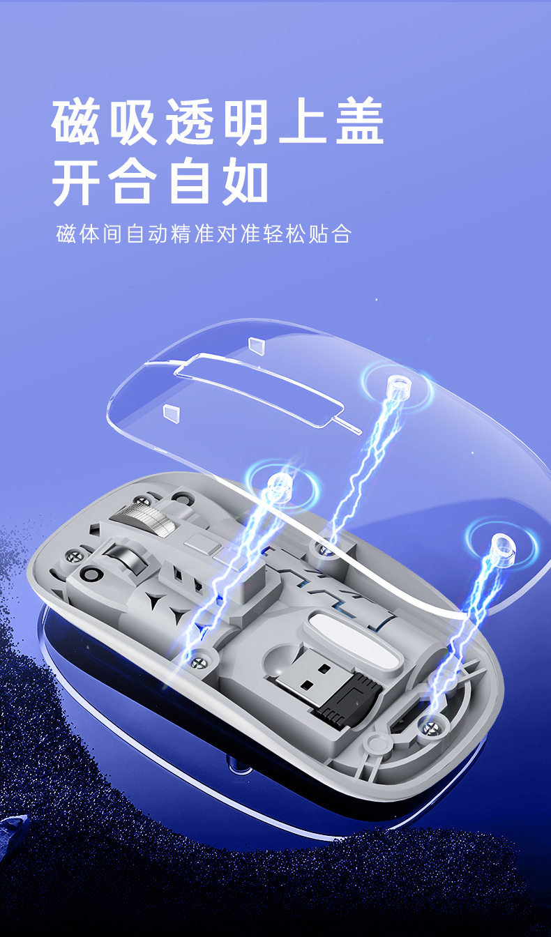Wireless Bluetooth Dual Mode Transparent Mouse Rechargeable Silent Portable Tablet Laptop Office Wireless Mouse