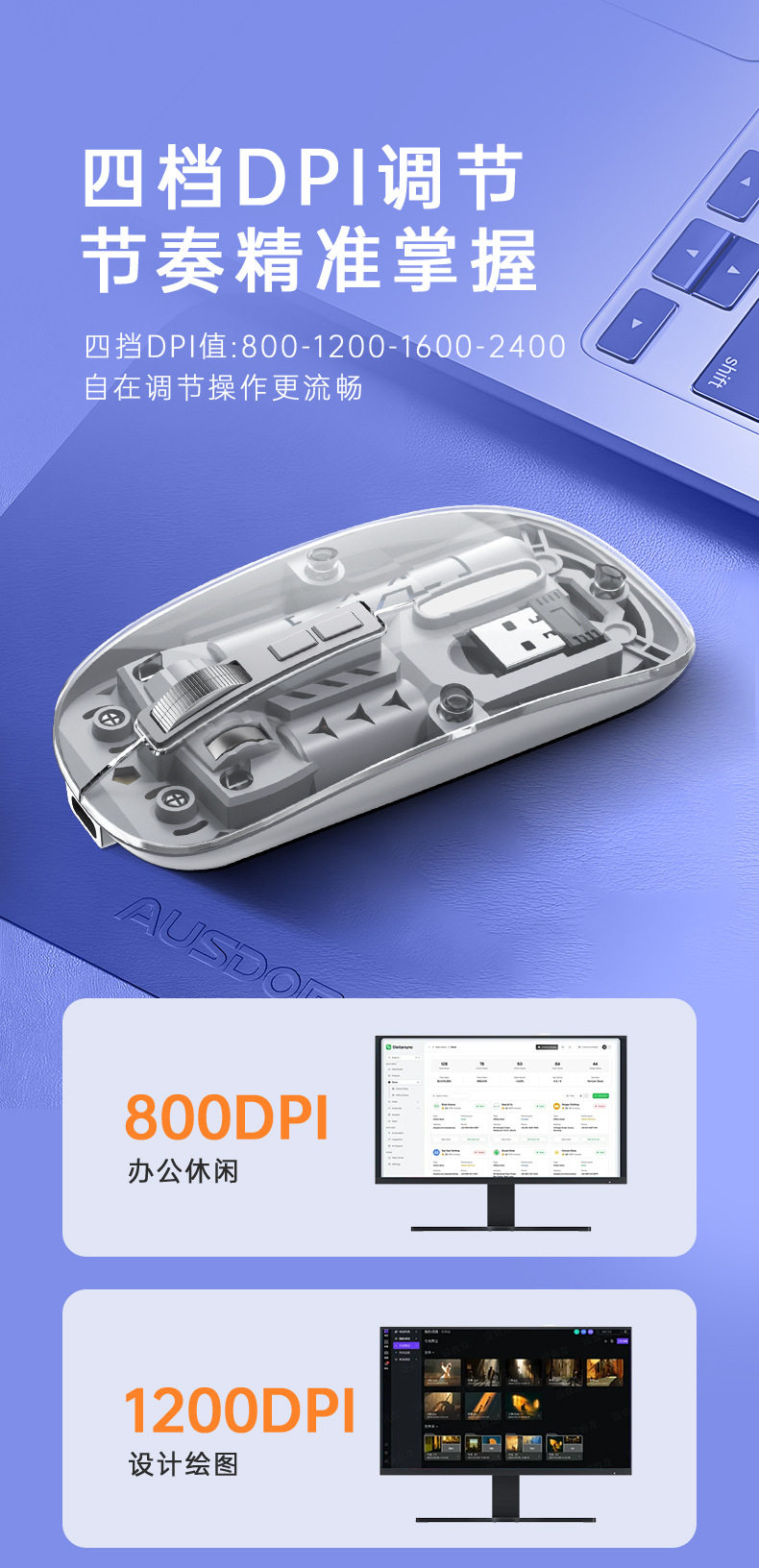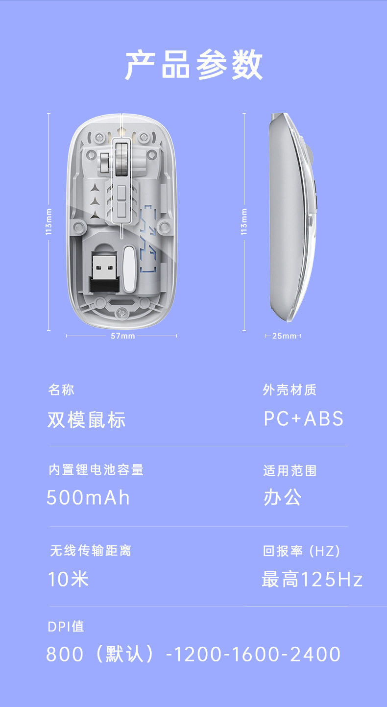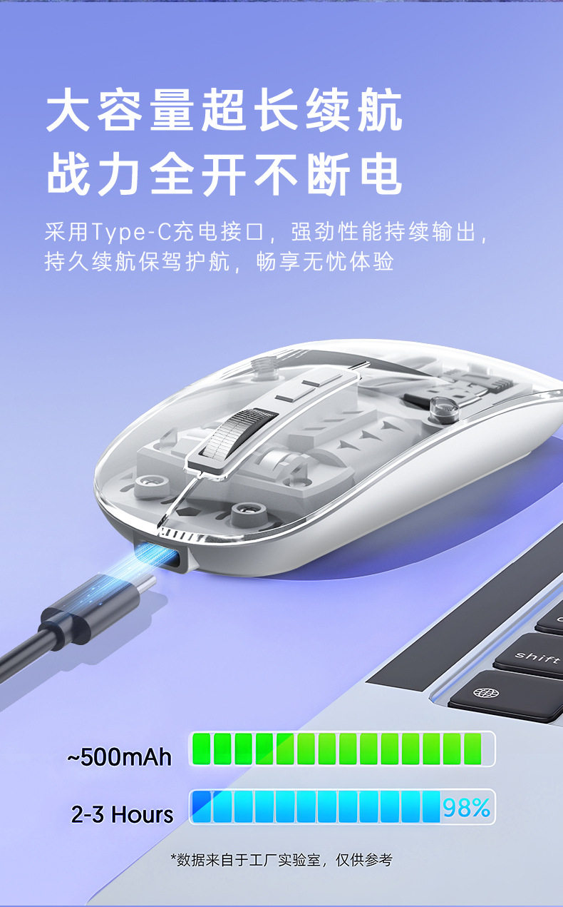 Wireless Bluetooth Dual Mode Transparent Mouse Rechargeable Silent Portable Tablet Laptop Office Wireless Mouse