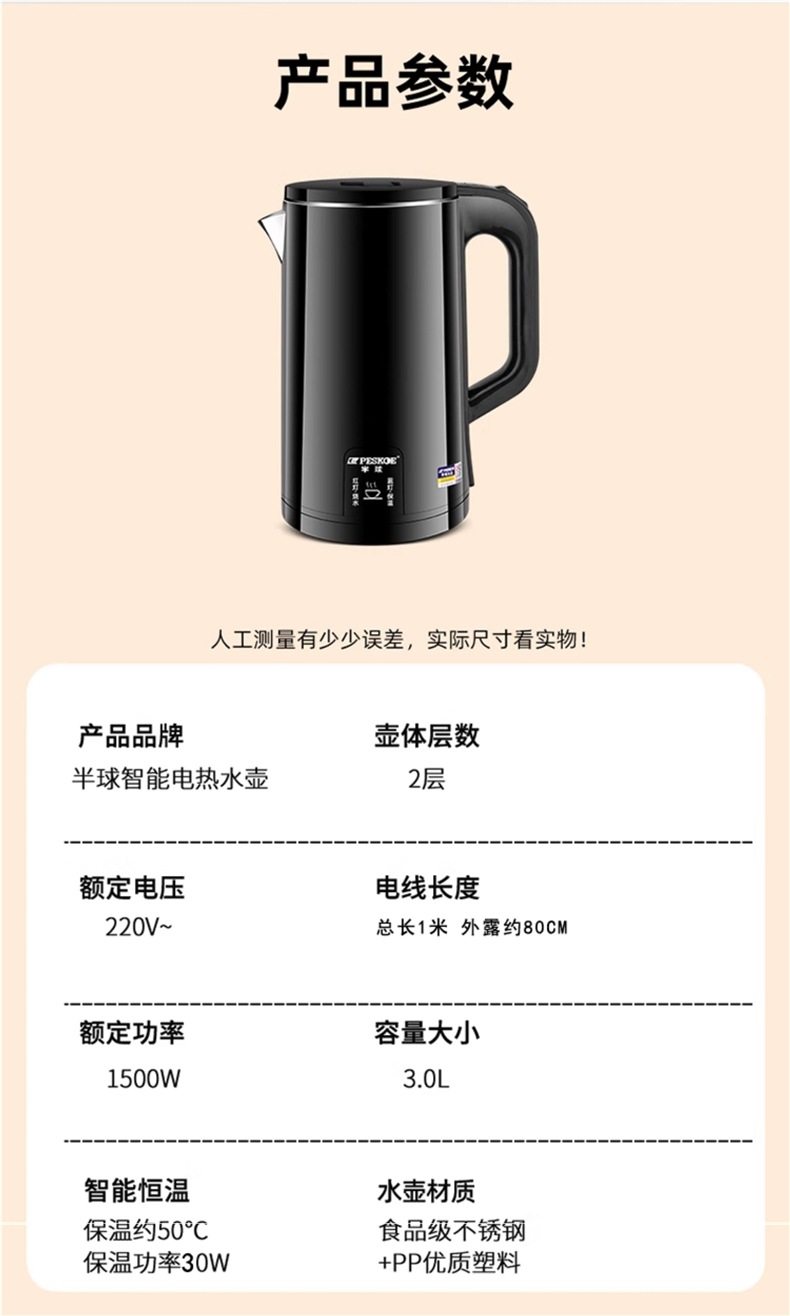 | Color | 2.0l black [boil water only] 1m cord - three-year replacement warranty,3.0l black [boil water + smart keep warm] 1m line - three-year replacement,3.0l blue [boil water + smart keep warm] 1m line - three-year replacement,3.0l green [boil water + smart keep warm] 1m line - three-year replacement,3.0l black [boil water only] 1m wire - three-year replacement,3.0l blue [boil water only] 1m wire - three-year replacement,3.0l green [boil water only] 1m wire - three-year replacement,3l white [boiling water + intelligent insulation] 1m lines - renewed in three years,3l black [boil water + smart keep warm] 1m line - three-year replacement,3l blue [boil water + smart keep warm] 1m line - three-year replacement,3l white [boils water only] 1m lines - renewed every three years,3l black [boil water only] 1m cord - 3-year replacement warranty,3l blue [boils water only] 1m lines - renewed every three years,2.0l pink [boil water only] 1m wire - three-year replacement |